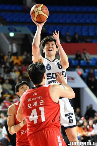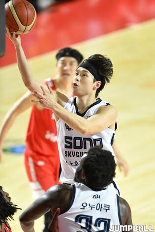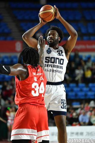 [점프볼=잠실/유용우 기자] 19일 잠실학생체육관에서 열린 2023-2024 정관장 프로농구 서울 SK와 고양 소노의 경기, 소노 오누아쿠가 자유투를 던지고 있다.