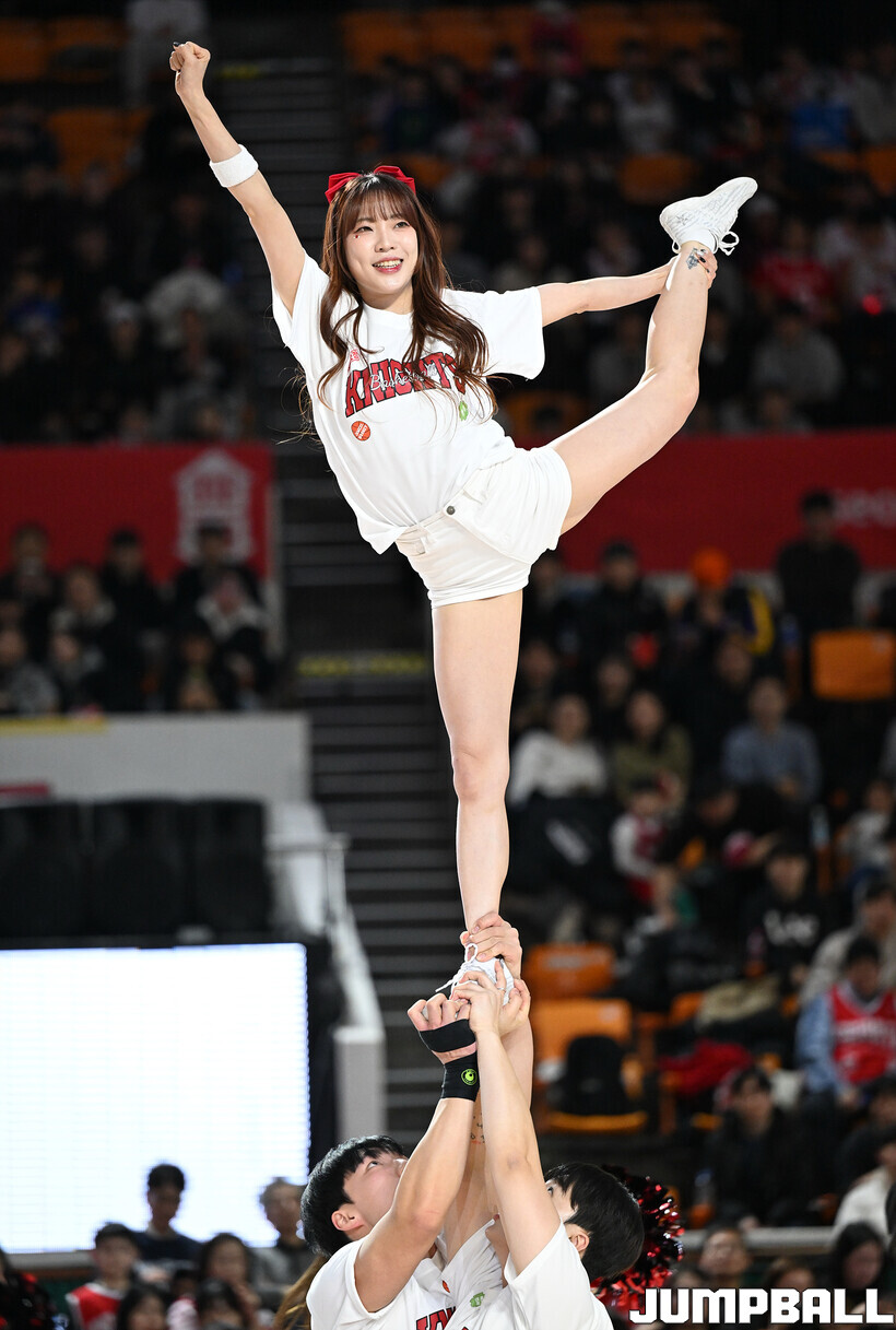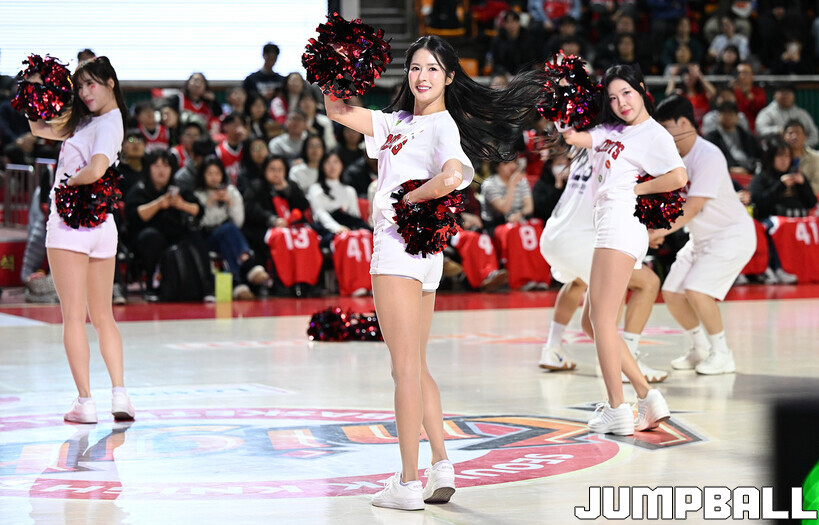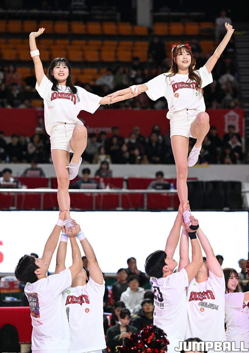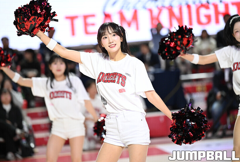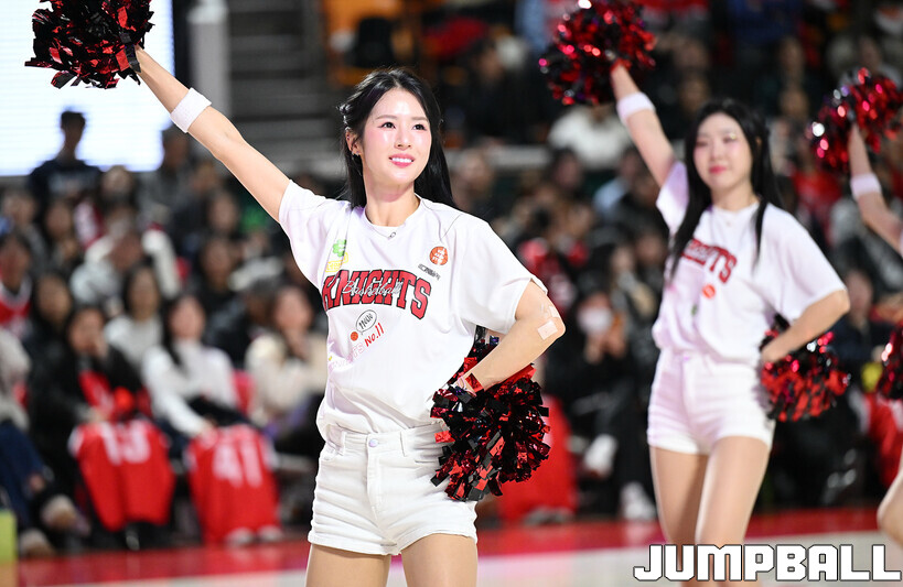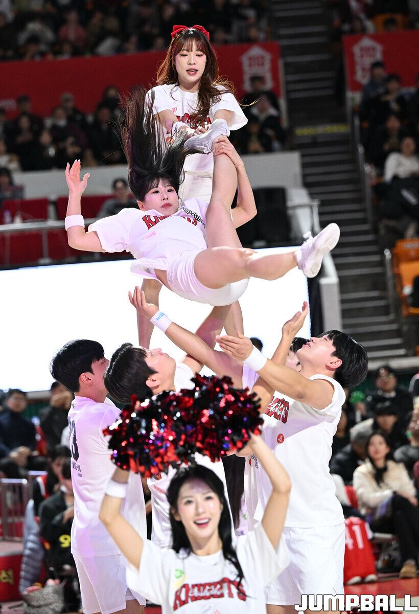 [점프볼=잠실학생/문복주 기자] 13일 잠실학생체육관에서 펼쳐진 2025-2026 LG전자 프로농구 서울 SK와 원주 DB의 4라운드 경기에 팀 나이츠 치어리더가 합동 공연을 했다.