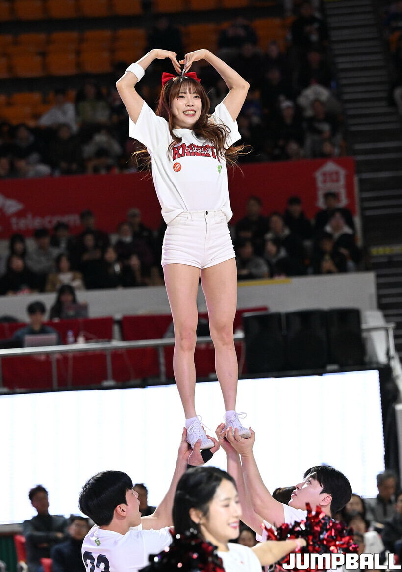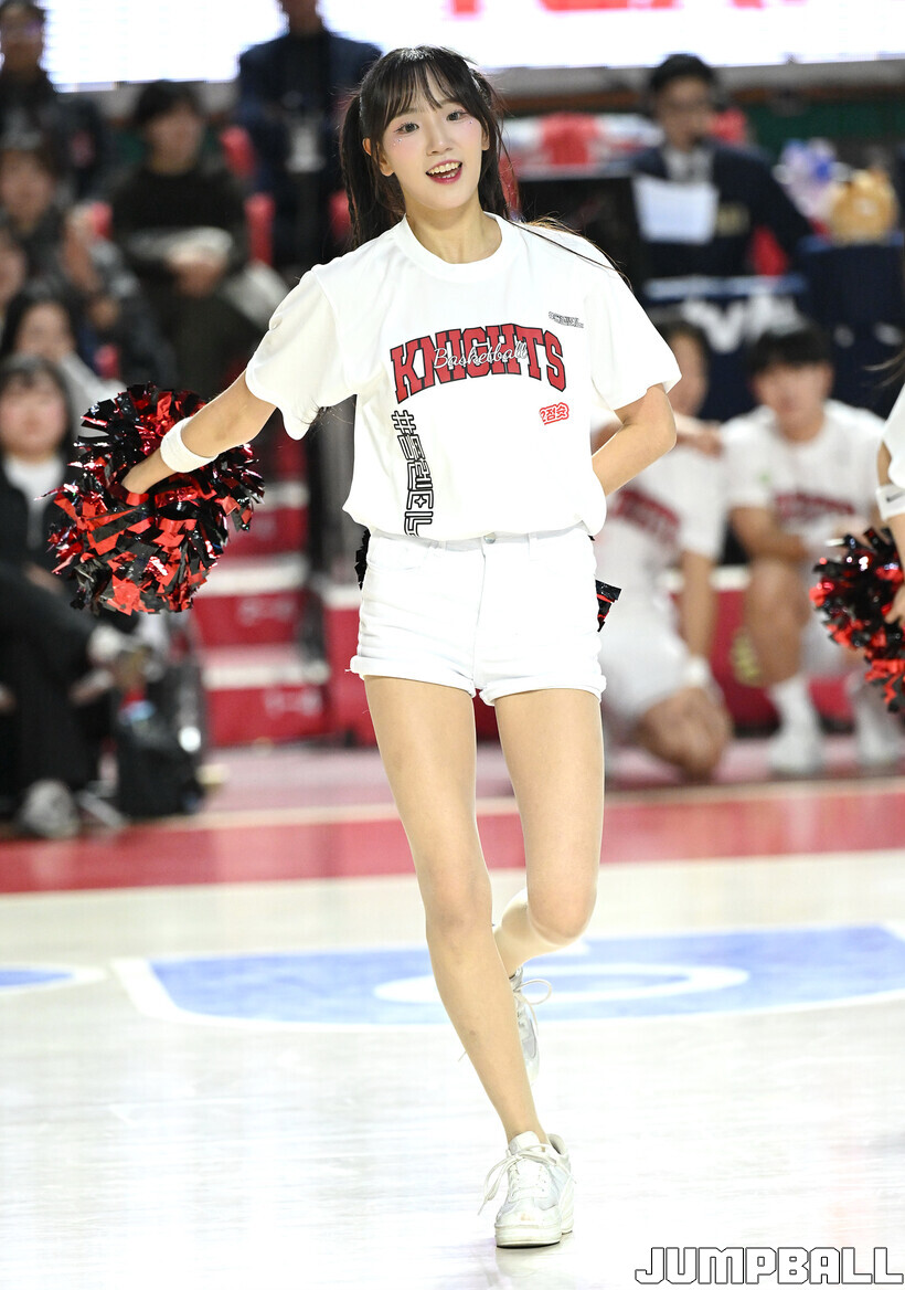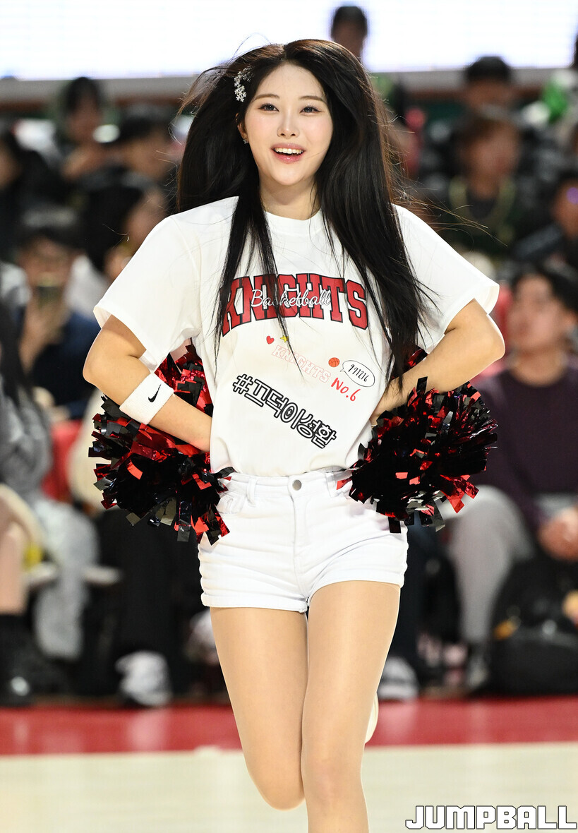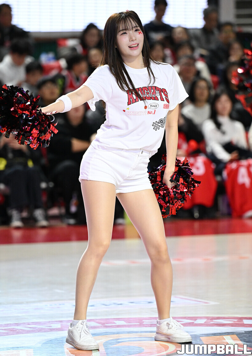 [점프볼=잠실학생/문복주 기자] 13일 잠실학생체육관에서 펼쳐진 2025-2026 LG전자 프로농구 서울 SK와 원주 DB의 4라운드 경기에 팀 나이츠 치어리더가 합동 공연을 했다.