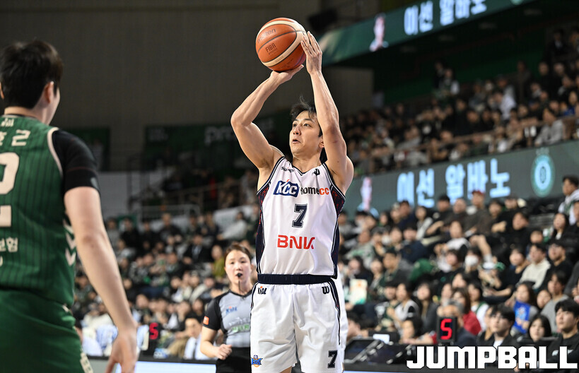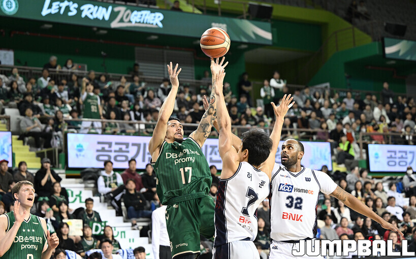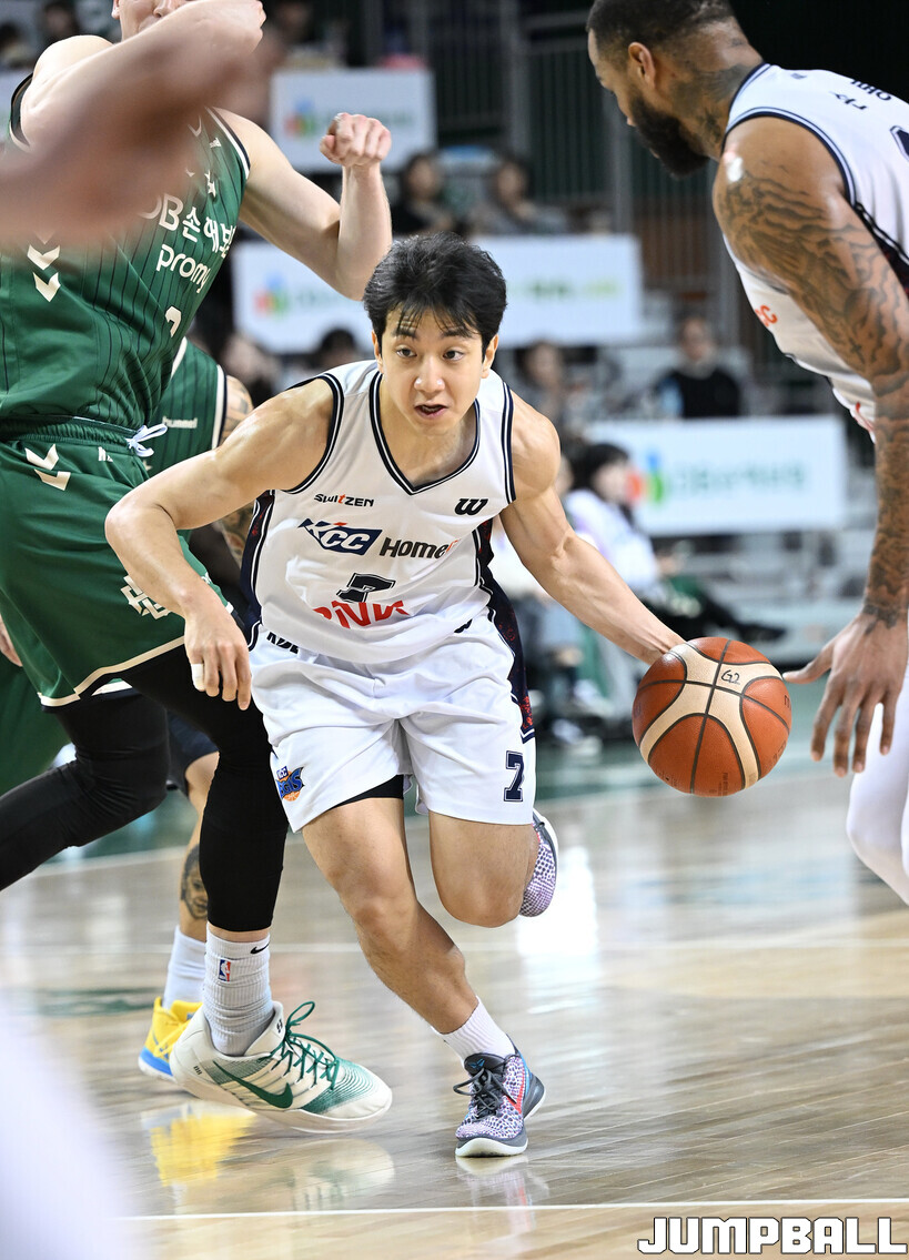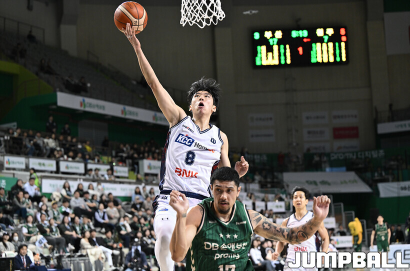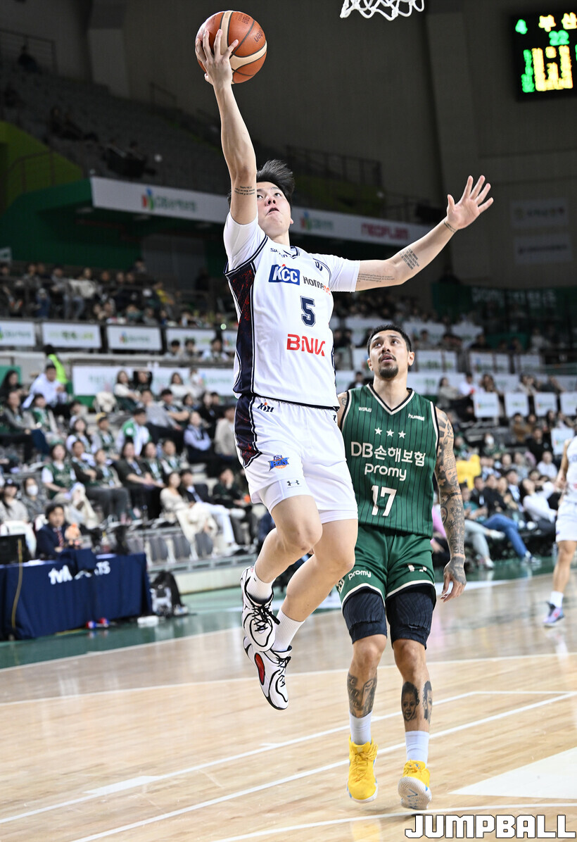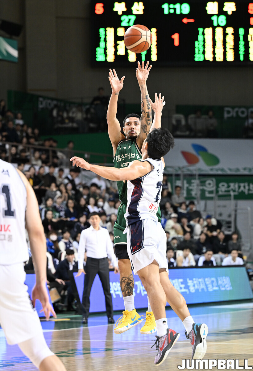 [점프볼=원주/문복주 기자] 부산 KCC는 5일 원주DB프로미아레나에서 열린 2025-2026 LG전자 프로농구 원주 DB와의 정규리그 5번째 맞대결에서 104-84로 크게 승리했다. KCC의 허훈(29점 3점슛 6개 7어시스트)와 숀롱과 함께 승리를 이끌었다.