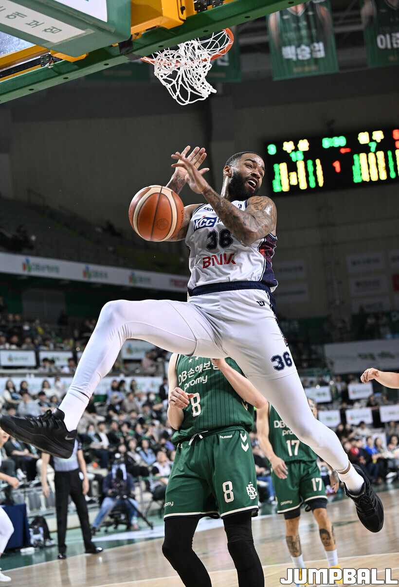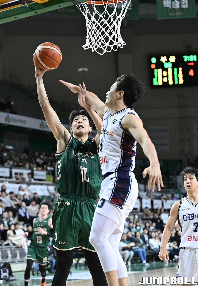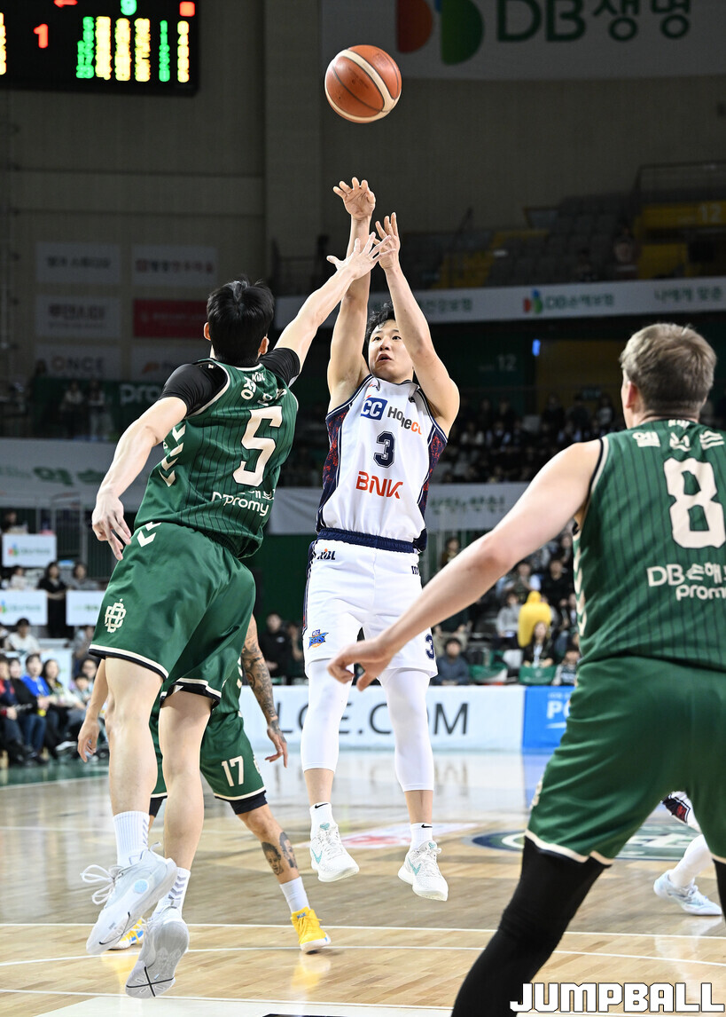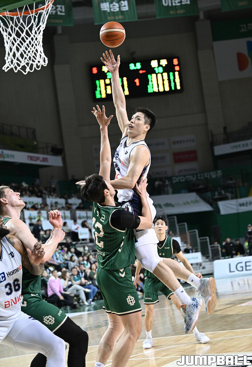 [점프볼=원주/문복주 기자] 부산 KCC는 5일 원주DB프로미아레나에서 열린 2025-2026 LG전자 프로농구 원주 DB와의 정규리그 5번째 맞대결에서 104-84로 크게 승리했다. KCC의 허훈(29점 3점슛 6개 7어시스트)와 숀롱과 함께 승리를 이끌었다.