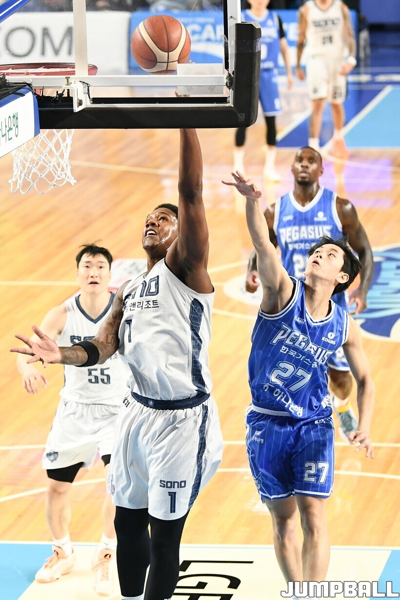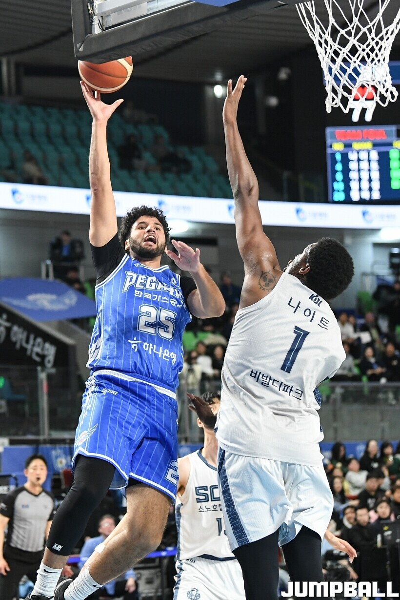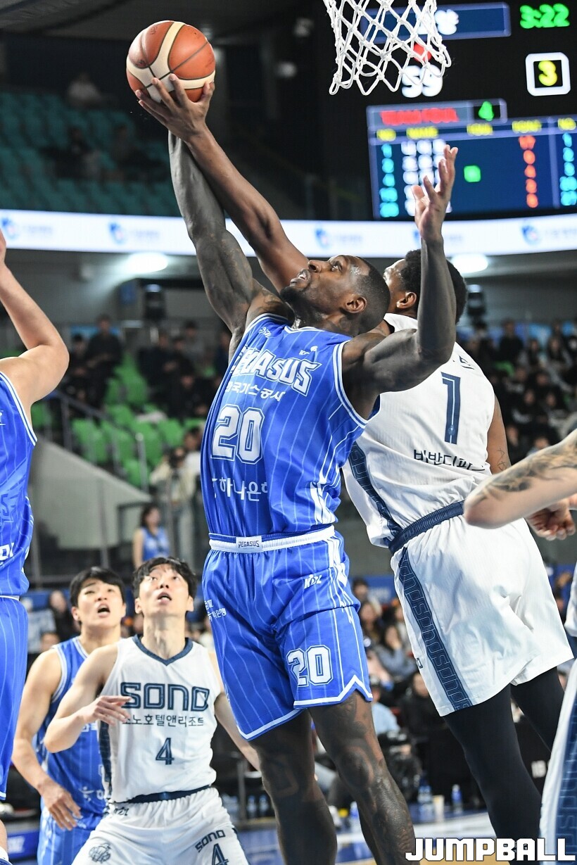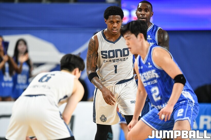 [점프볼=대구/유용우 기자] 5일 대구체육관에서 열린 2025-2026 LG전자 프로농구 대구 한국가스공사와 고양 소노의 경기, 소노는 77-67로 가스공사에 원정 승리했다. 나이트 25점, 이정현 15점 총 40점을 합작한 소노는 라건아와 정성우가 각각 15점씩을 올린 가스공사를 따돌리며 원정 승리를 거뒀다.