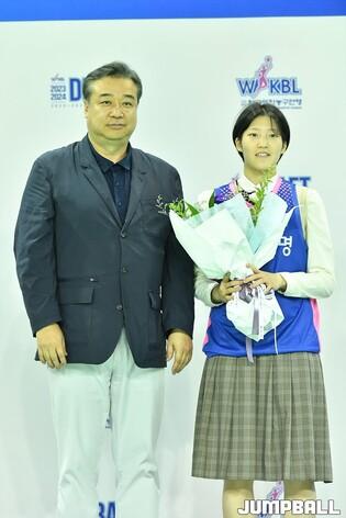 4일 청주체육관에서 열린 2023~2024 WKBL 신입선수 선발회, 2라운드 5순위 하나원큐가 상주여고 신태희를 지명했다. [점프볼=청주/유용우 기자]