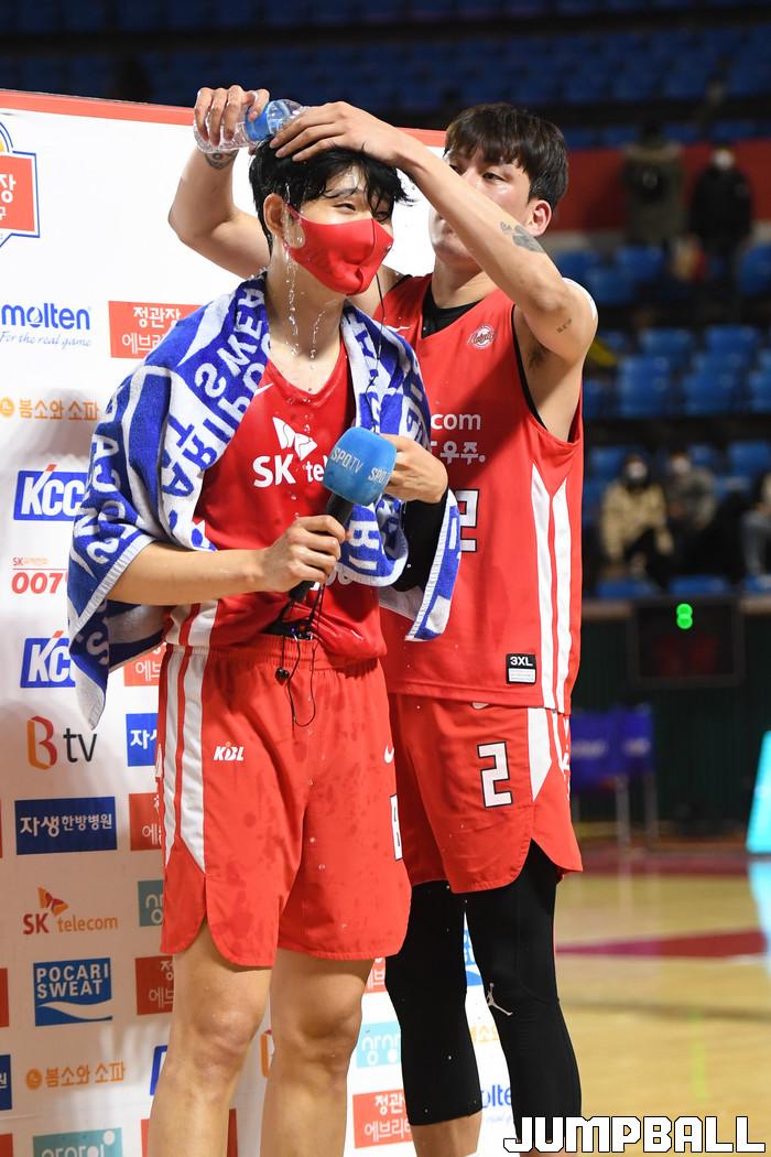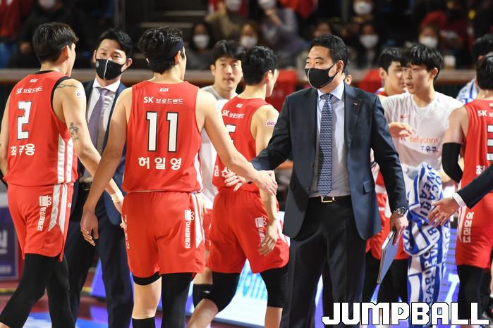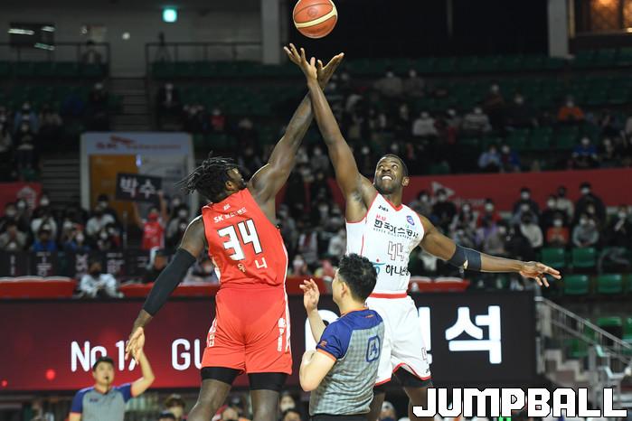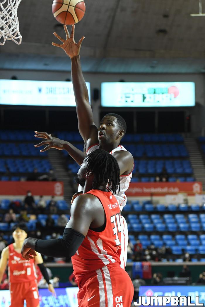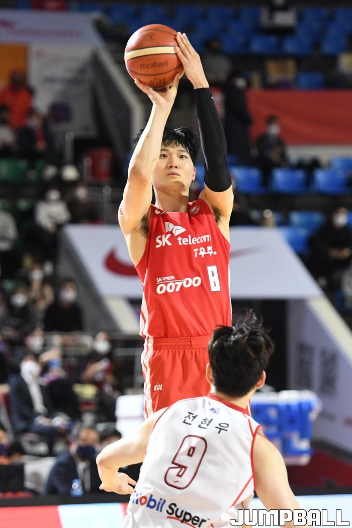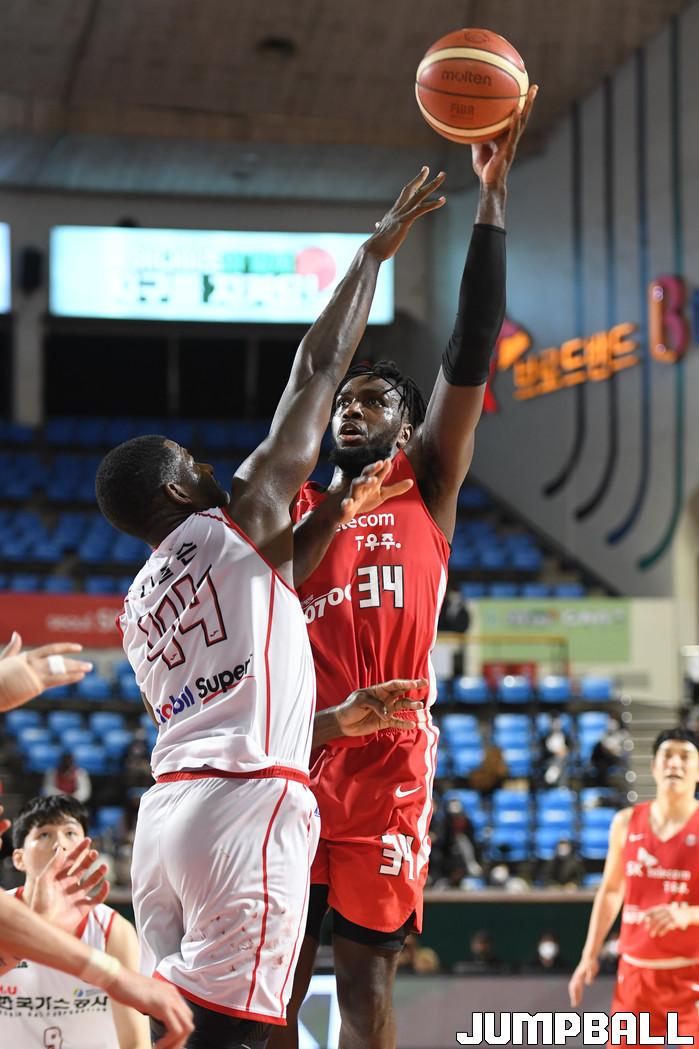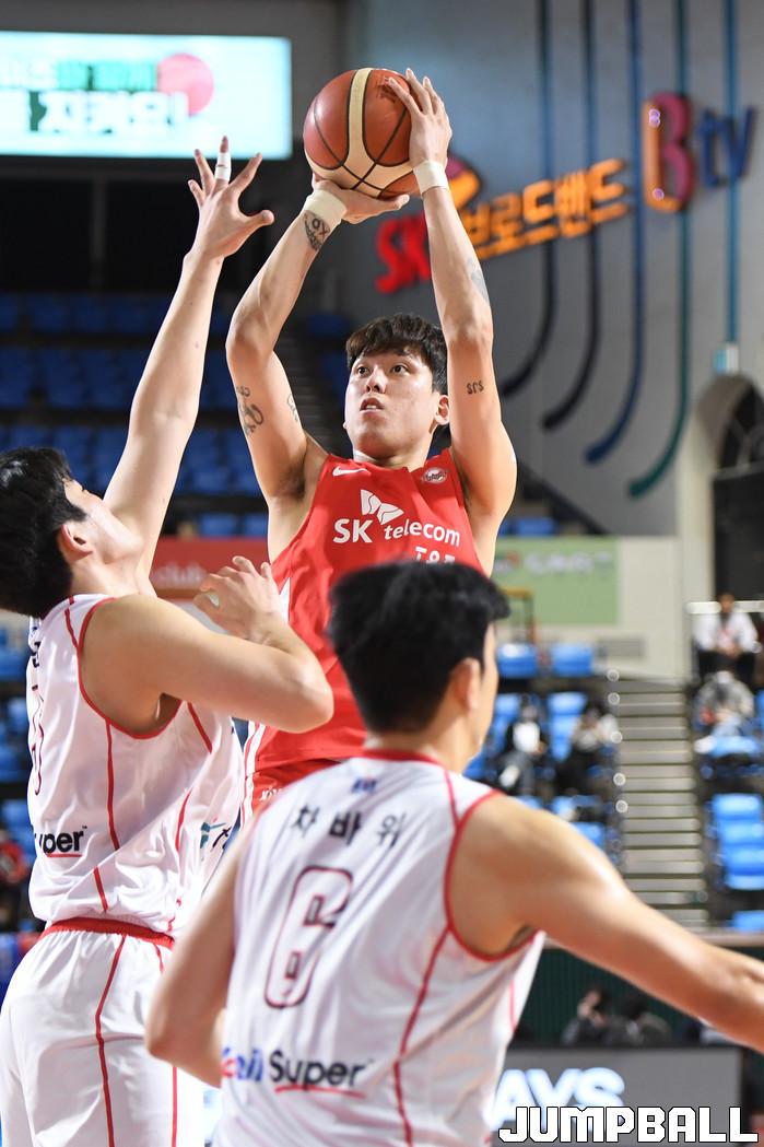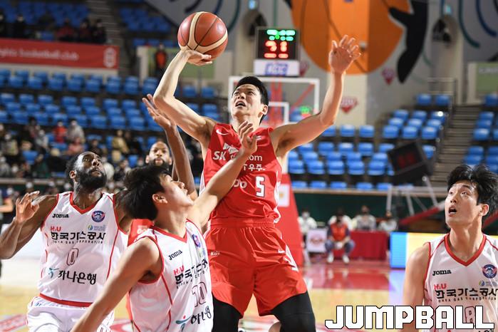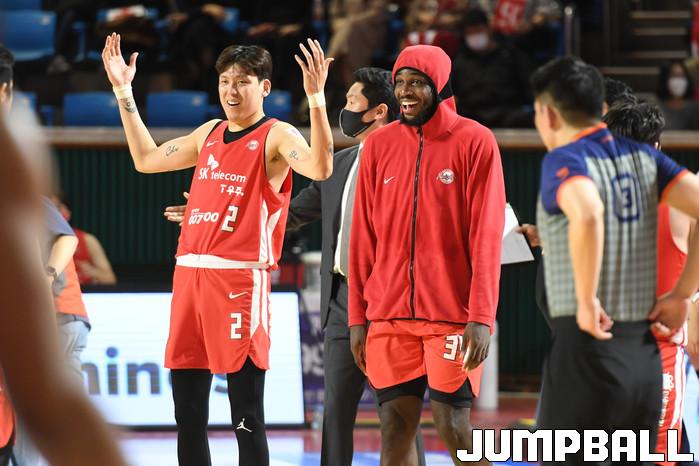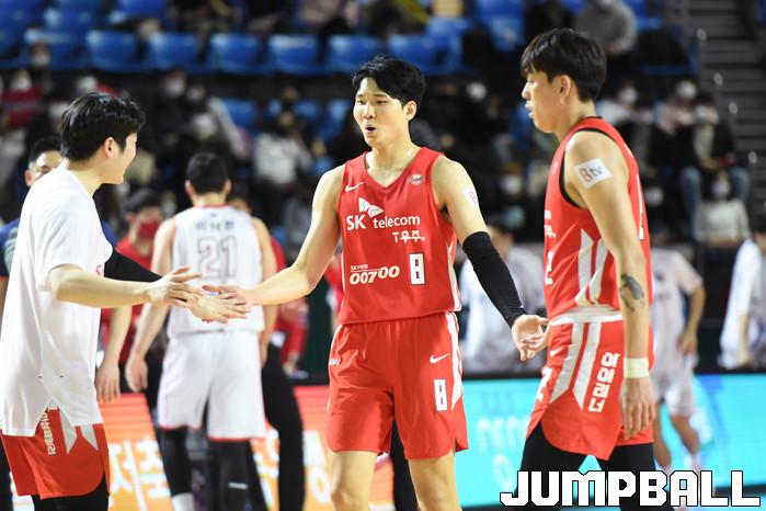 24일 잠실학생체육관에서 열린 2021-2022 KGC인삼공사 정관장 프로농구 서울 SK와 대구 한국가스공사의 경기, SK가 한국가스공사에 97-87로 승리했다. SK와 한국가스공사 경기 화보.