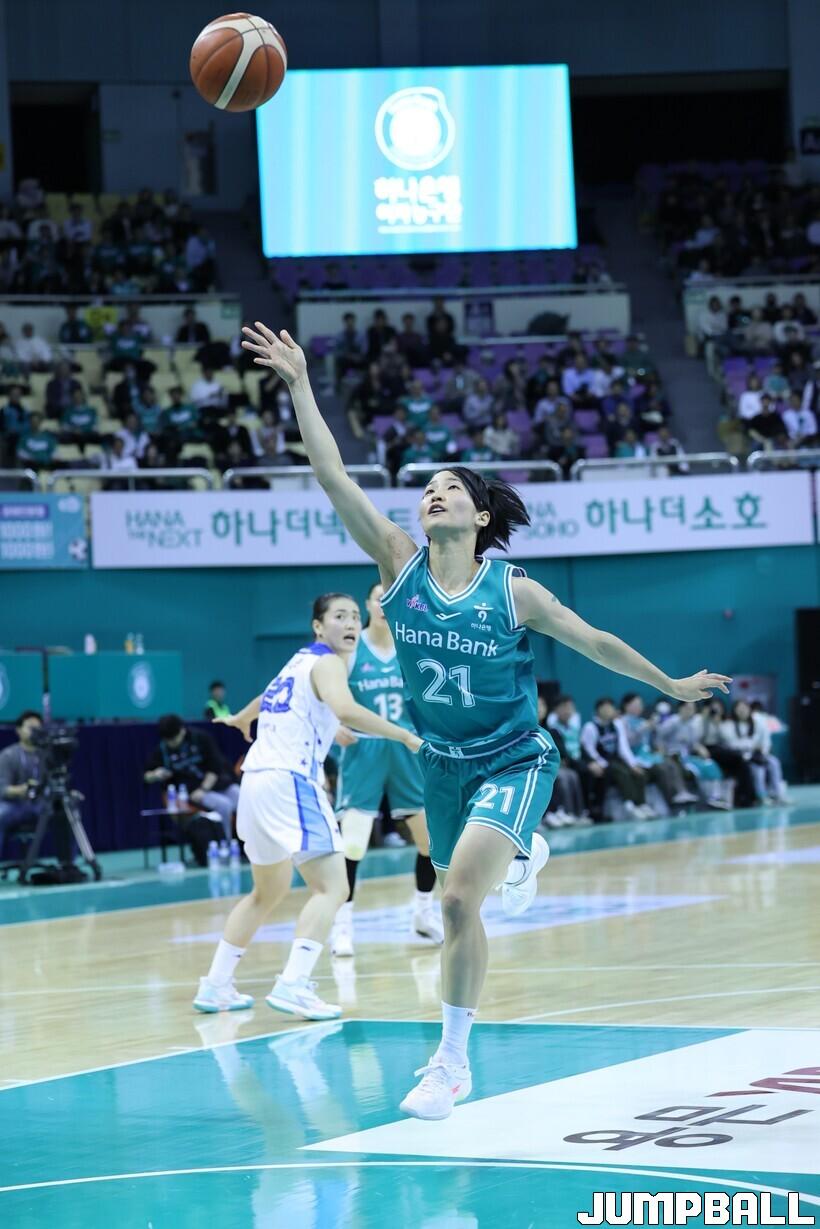부천 하나은행 사키는 17일 BNK금융 2025~2026 여자프로농구 아산 우리은행과의 경기에서 11점 6리바운드 3어시스트 1스틸을 기록, 하나은행의 개막전 승리(66-45)의 주역으로 나섰다.