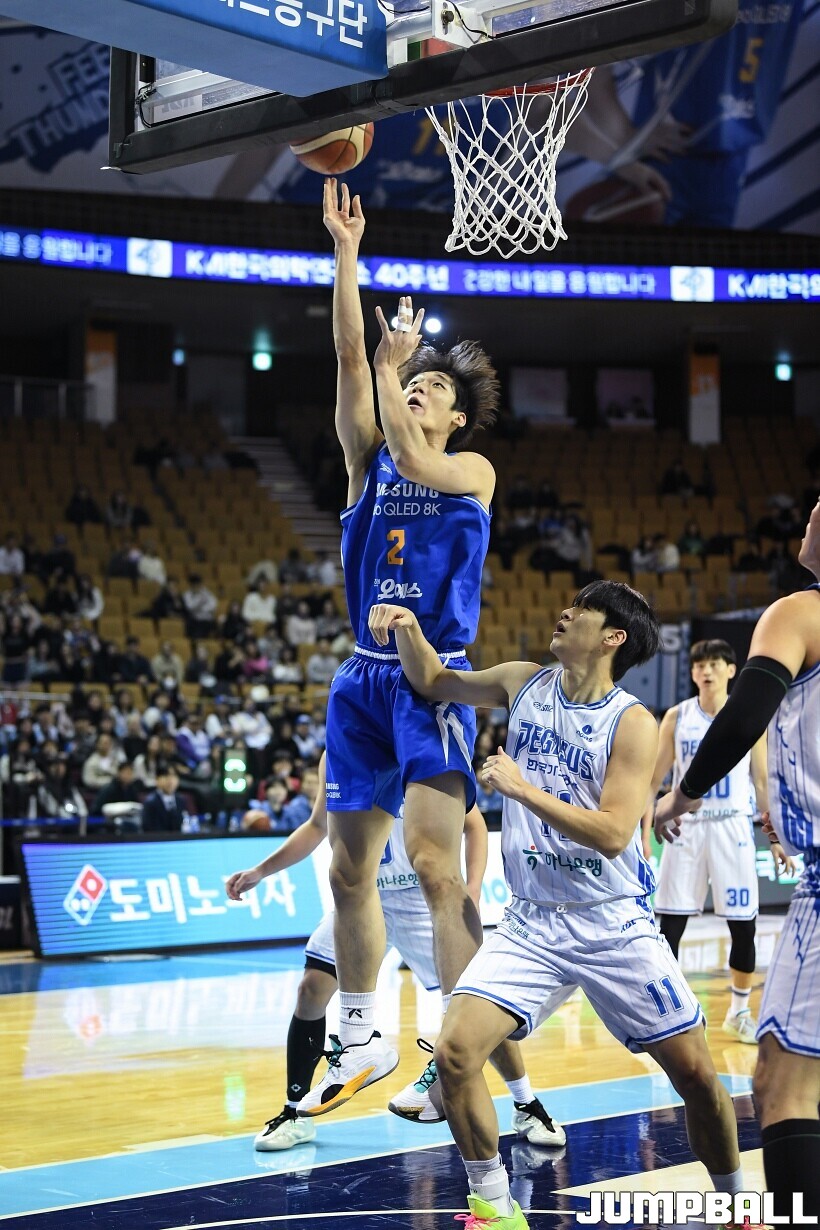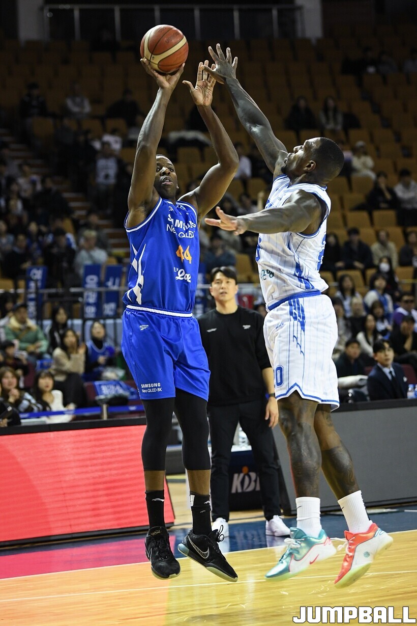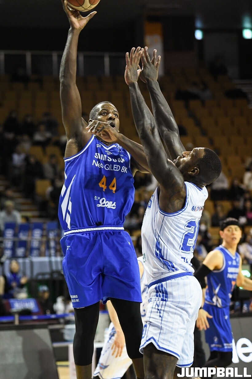 [점프볼=잠실/유용우 기자] 22일 잠실실내체육관에서 열린 2025-2026 LG전자 프로농구 서울 삼성과 대구 한국가스공사의 경기, 삼성이 한국가스공사에 92-85로 승리했다. 중심엔 앤드류 니콜슨이 있었다. 니콜슨은 24점 8리바운드를 기록하며 팀 승리를 이끌었다. 이관희는 18점을 기록하며 득점을 도왔다.