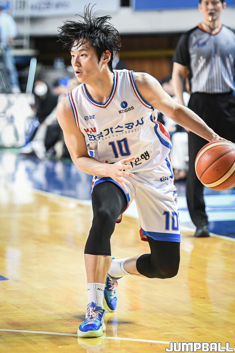 [점프볼=전주/박상혁 기자] 29일 전주실내체육관에서 열린 2022-2023 SKT 에이닷 프로농구 전주 KCC와 대구 한국가스공사의 경기, 한국가스공사 염유성이 스텝백을 시도하고 있다.
