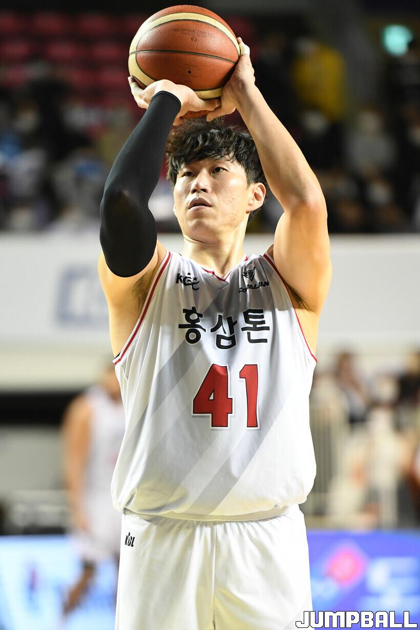 23일 전주실내체육관에서 열린 2022-2023 SKT 에이닷 프로농구 전주 KCC와 안양 KGC인삼공사의 경기, KGC 오세근이 자유투를 시도하고 있다.
