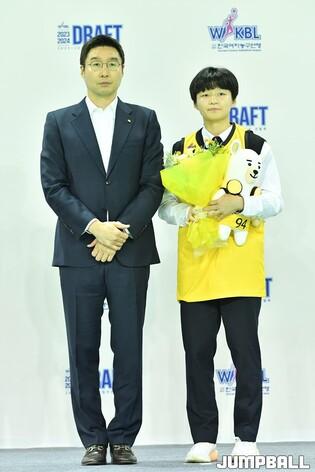 4일 청주체육관에서 열린 2023~2024 WKBL 신입선수 선발회, 선발 선수들이 기념촬영을 진행하고 있다. [점프볼=청주/유용우 기자]