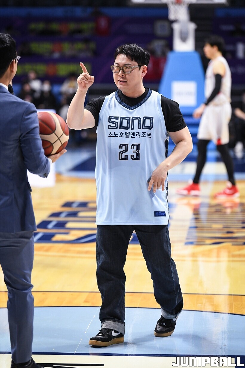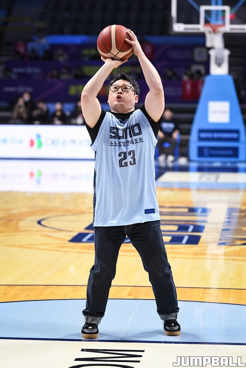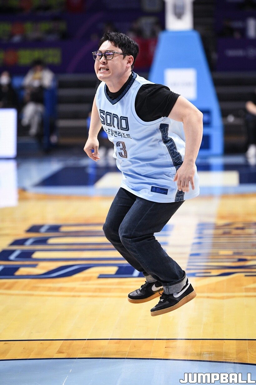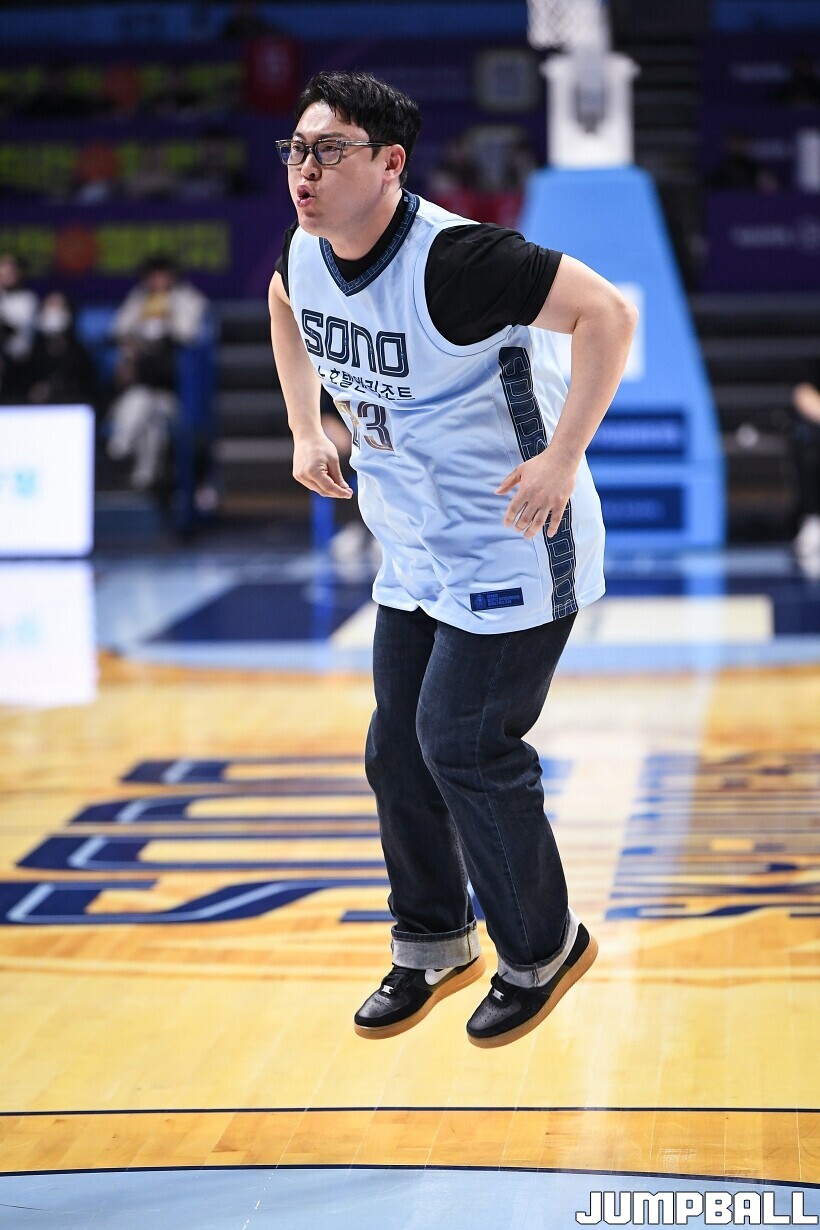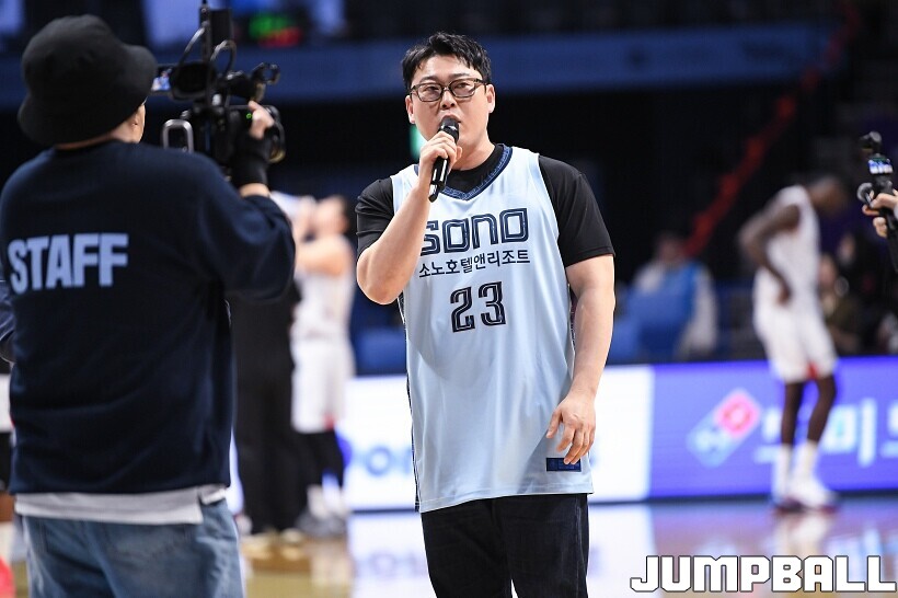 [점프볼=고양/유용우 기자] 5일 고양 소노아레나에서 열린 2025-2026 LG전자 프로농구 고양 소노과 안양 정관장의 경기, 개그맨/배우 이선민이 소노의 승리를 기원하는 시투를 진행했다.