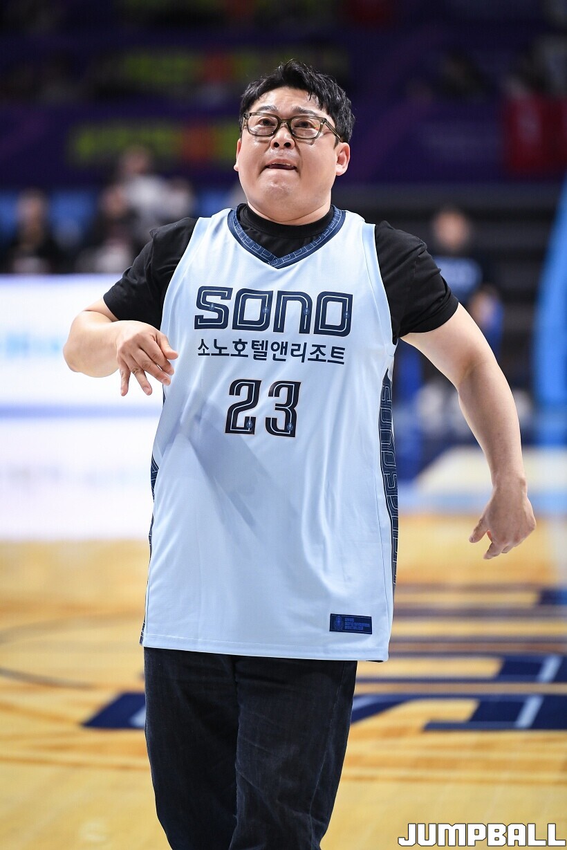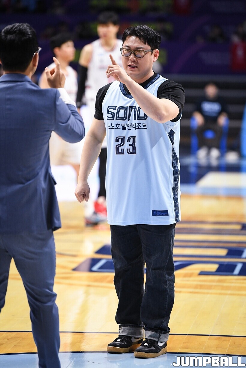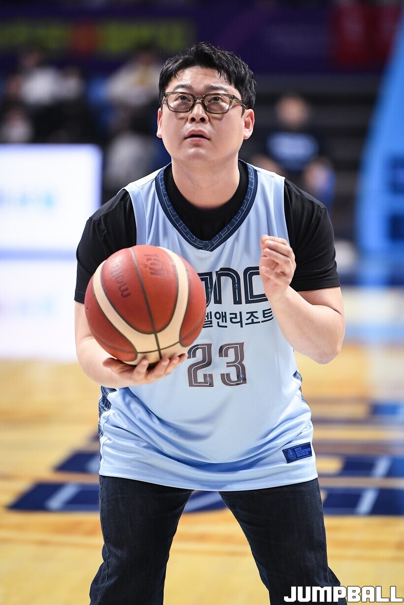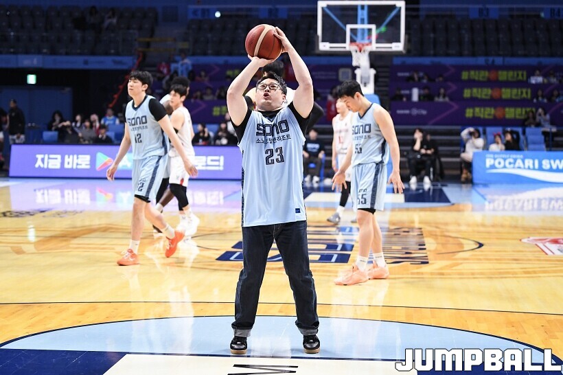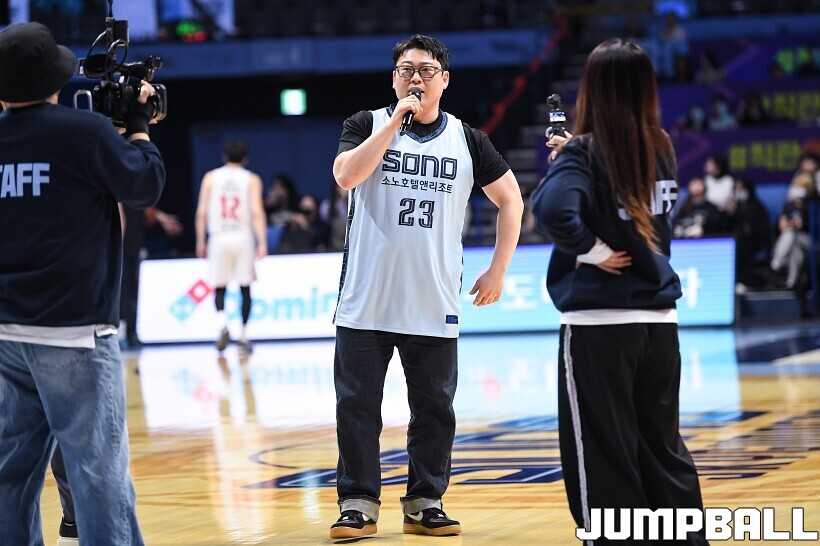 [점프볼=고양/유용우 기자] 5일 고양 소노아레나에서 열린 2025-2026 LG전자 프로농구 고양 소노과 안양 정관장의 경기, 개그맨/배우 이선민이 소노의 승리를 기원하는 시투를 진행했다.