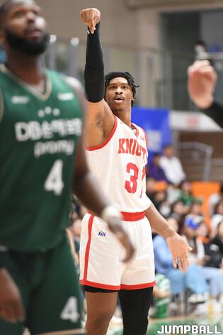 [점프볼=제천/박상혁 기자] 8일 제천체육관에서 열린 2024 DB손해보험 KBL 컵대회 in 제천 원주 DB와 서울 SK의 경기, DB 이선 알바노가 3점슛을 시도한 후 림을 바라보고 있다.