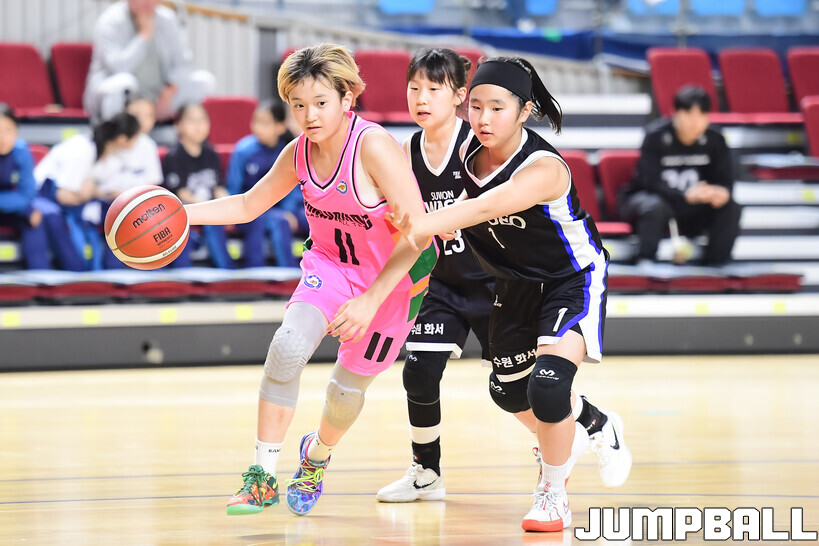 [점프볼=김천/박상혁 기자] 16일 김천체육관에서 열린 아이에스동서 제25회 협회장배 전국초등농구대회 3일차 상영초와 화서초의 여초부 예선 경기, 상영초가 화서초에 43-33으로 승리했다.