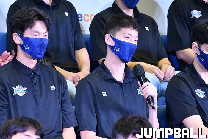 29일 용인 마북동 KCC 연습체육관에서 2021-2022 KCC 온라인 출정식이 열렸다. KCC 전준범이 팬들에게 포부를 전하고 있다.