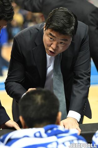 [점프볼=잠실실내/박상혁 기자] 31일 잠실실내체육관에서 열린 2023-2024 정관장 프로농구 서울 삼성과 대구 한국가스공사의 경기, 한국가스공사 강혁 감독대행이 선수들에게 작전 지시를 하고 있다.