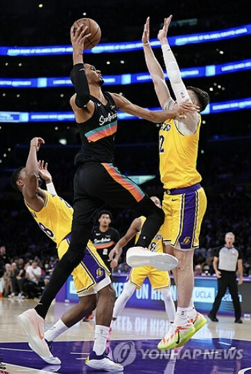 샌안토니오 스퍼스는 11일(한국시간) 미국 캘리포니아주 LA 크립토닷컴 아레나에서 열린 LA 레이커스와의 NBA 2025-2026시즌 원정경기에서 136-108 완승을 거뒀다. 서부 컨퍼런스 2위 샌안토니오는 5연승을 질주, 1위 오클라호마시티 썬더와의 승차를 3.5경기로 줄였다.