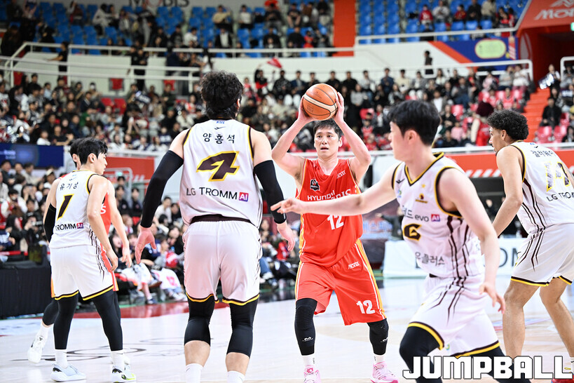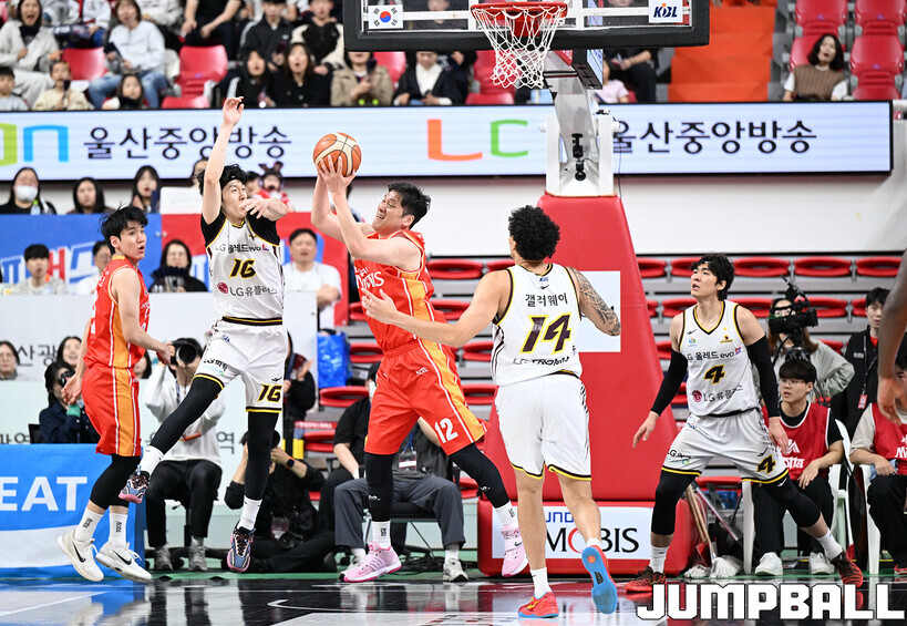[점프볼=울산/문복주 기자] 울산 현대모비스는 8일 울산동천체육관에서 벌어진 2025-2026 LG전자 프로농구 정규시즌 홈 마지막 경기에서 창원 LG에 78-56으로 승리를 했다.