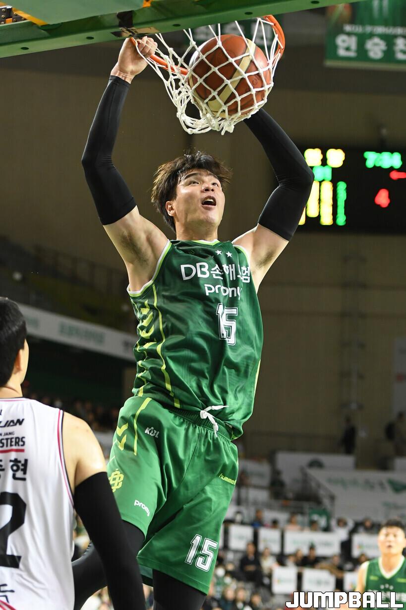 [점프볼=원주/박상혁 기자] 10일 원주종합체육관에서 열린 2023-2024 정관장 프로농구 원주 DB와 안양 정관장의 경기, DB 김종규가 덩크슛을 성공시키고 있다.