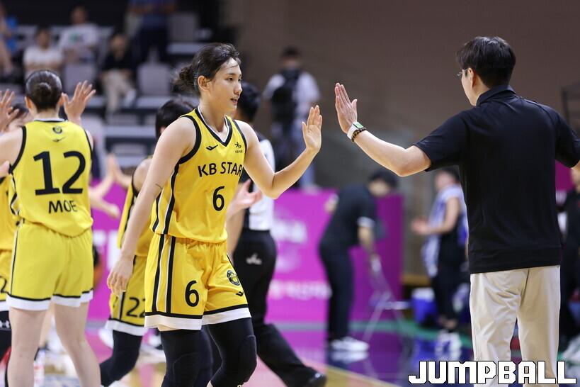 KB스타즈는 최근 대표팀 일정을 소화한 후 돌아온 허예은이 조별리그 첫 경기부터 24분 8초를 소화했지만, 강이슬은 엔트리에서 제외됐다. 컨디션이 크게 저하돼 당분간 선수 보호 차원의 휴식이 필요했기 때문이다. 김완수 감독은 박신자컵 개막 직전 “(강)이슬이는 출전하지 않을 예정”이라는 계획을 밝혔고, 실제 강이슬은 벤치에서 토요타와의 경기를 지켜봤다.