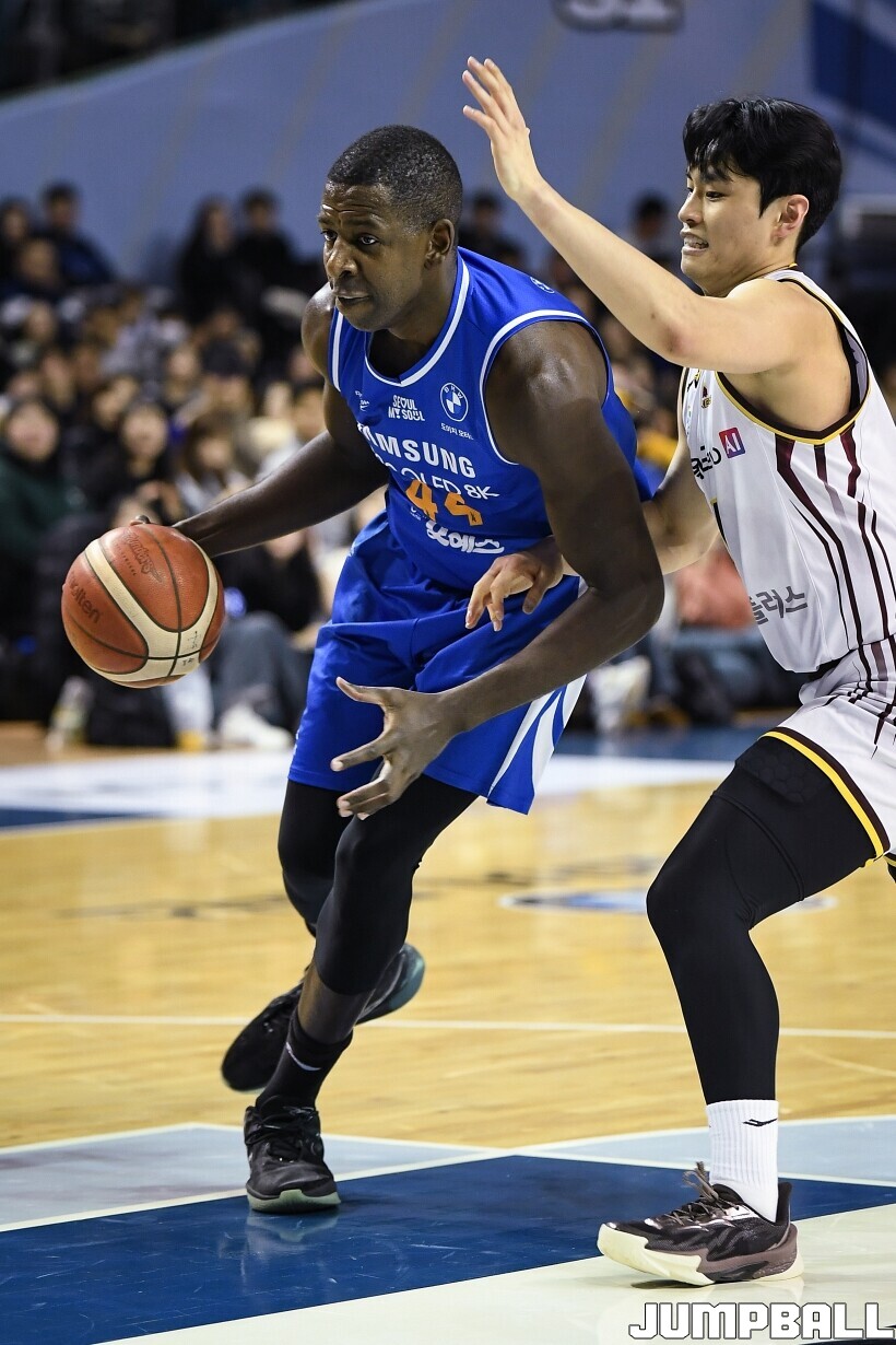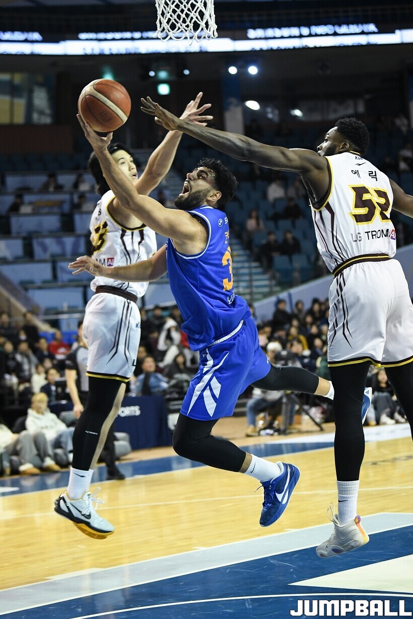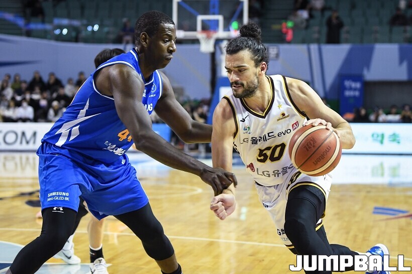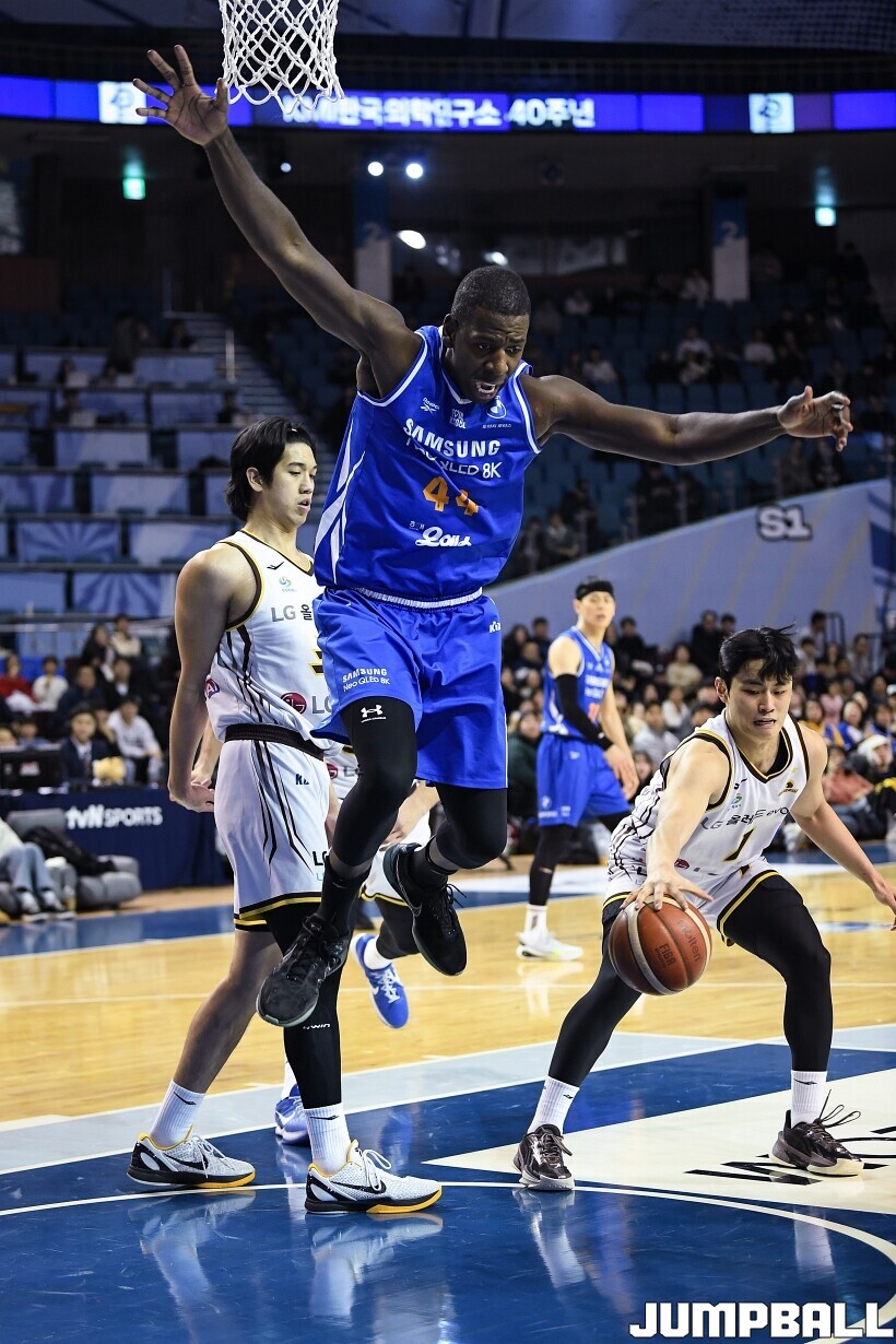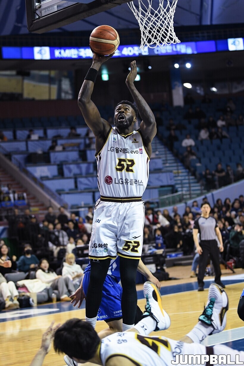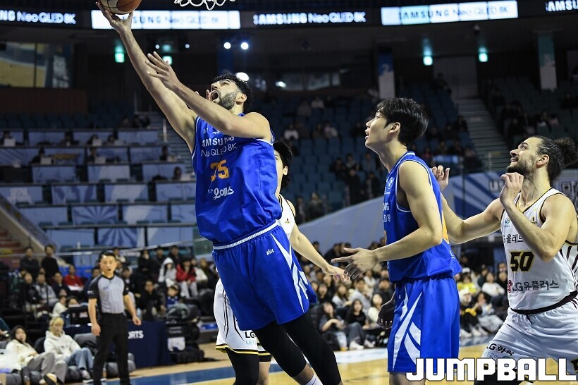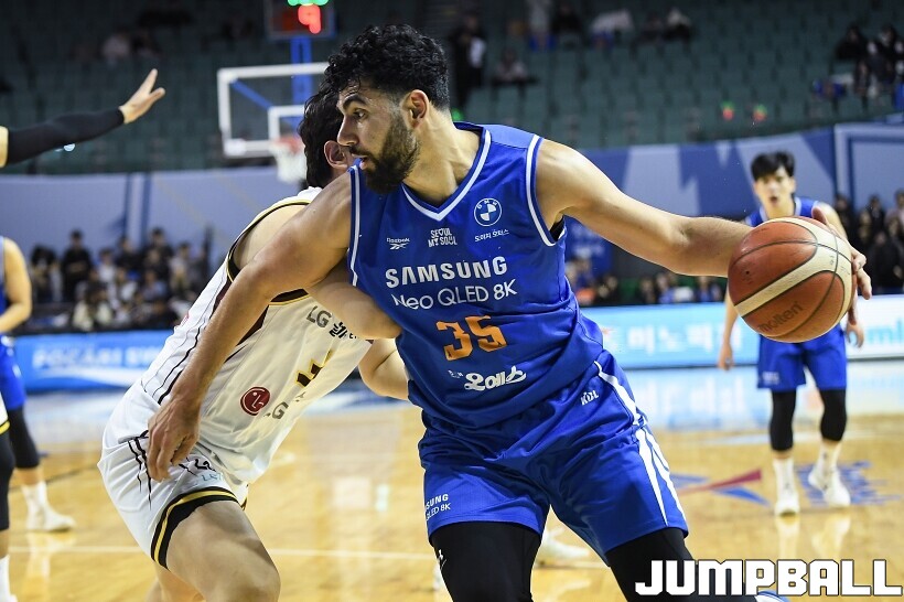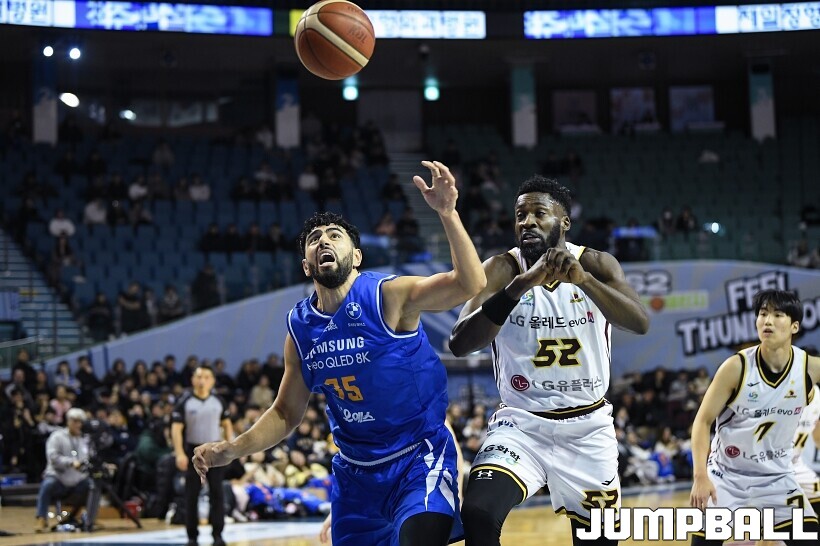 [점프볼=잠실/유용우 기자] 2일 잠실실내체육관에서 열린 2025-2026 LG전자 프로농구 서울 삼성과 창원 LG의 경기, LG 마레이가 16점 13리바운드 더블더블을 기록하며 80-62로 팀을 승리로 이끌었다. 니콜슨(2점 4리바운드)이 부진했던 삼성은 케렘 칸터가 24점 10리바운드 더블더블을 기록하며 분전했지만 팀의 패배를 막을 수는 없었다.