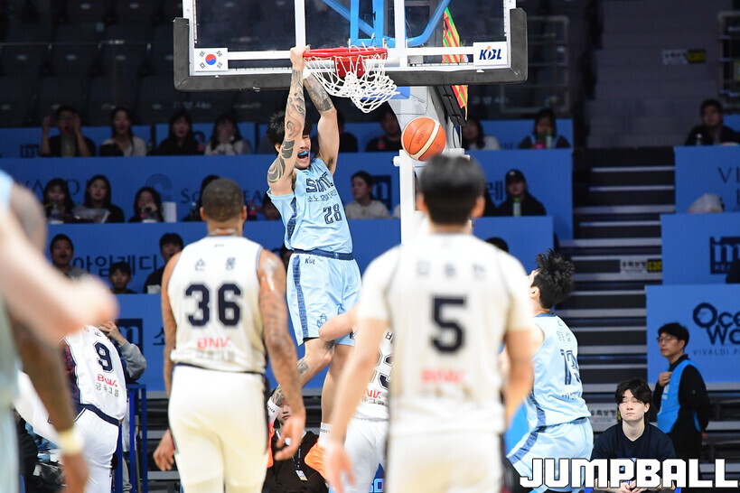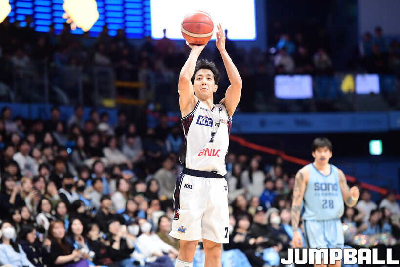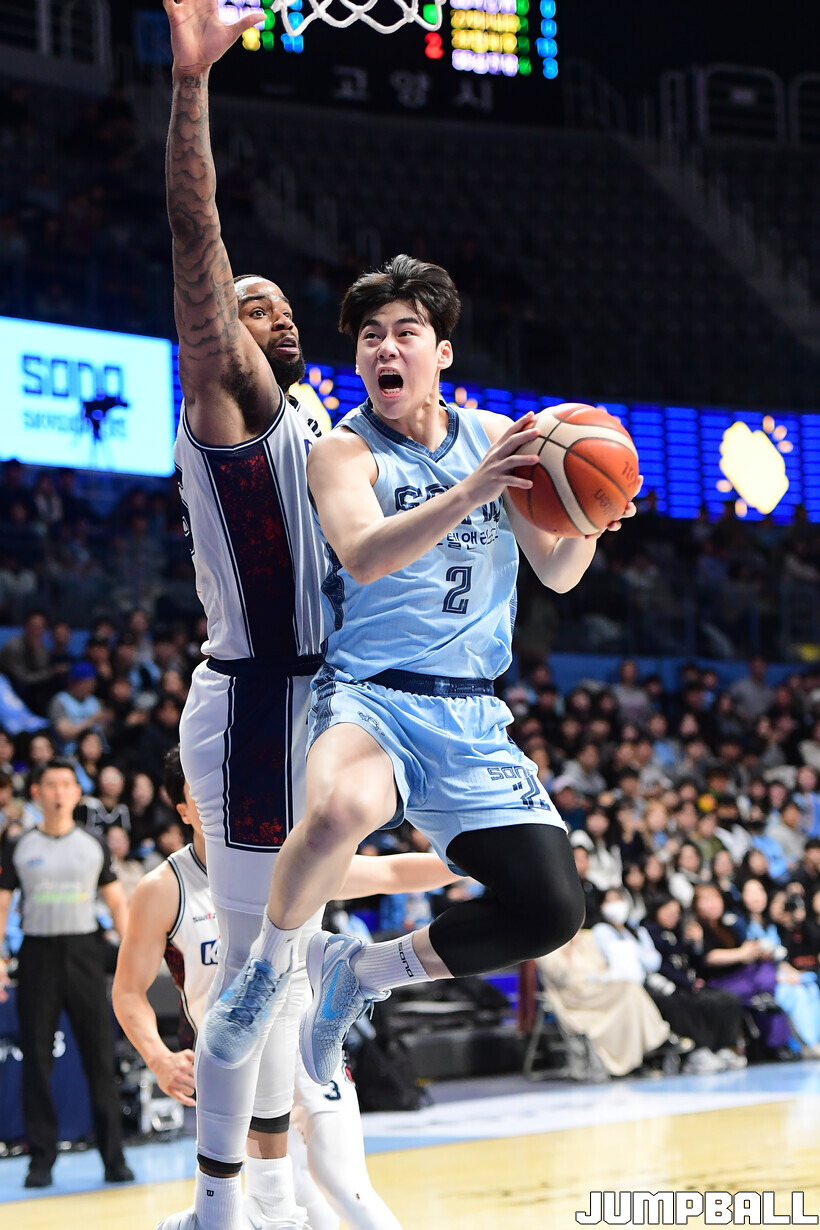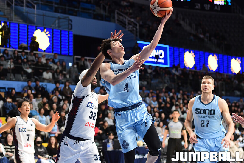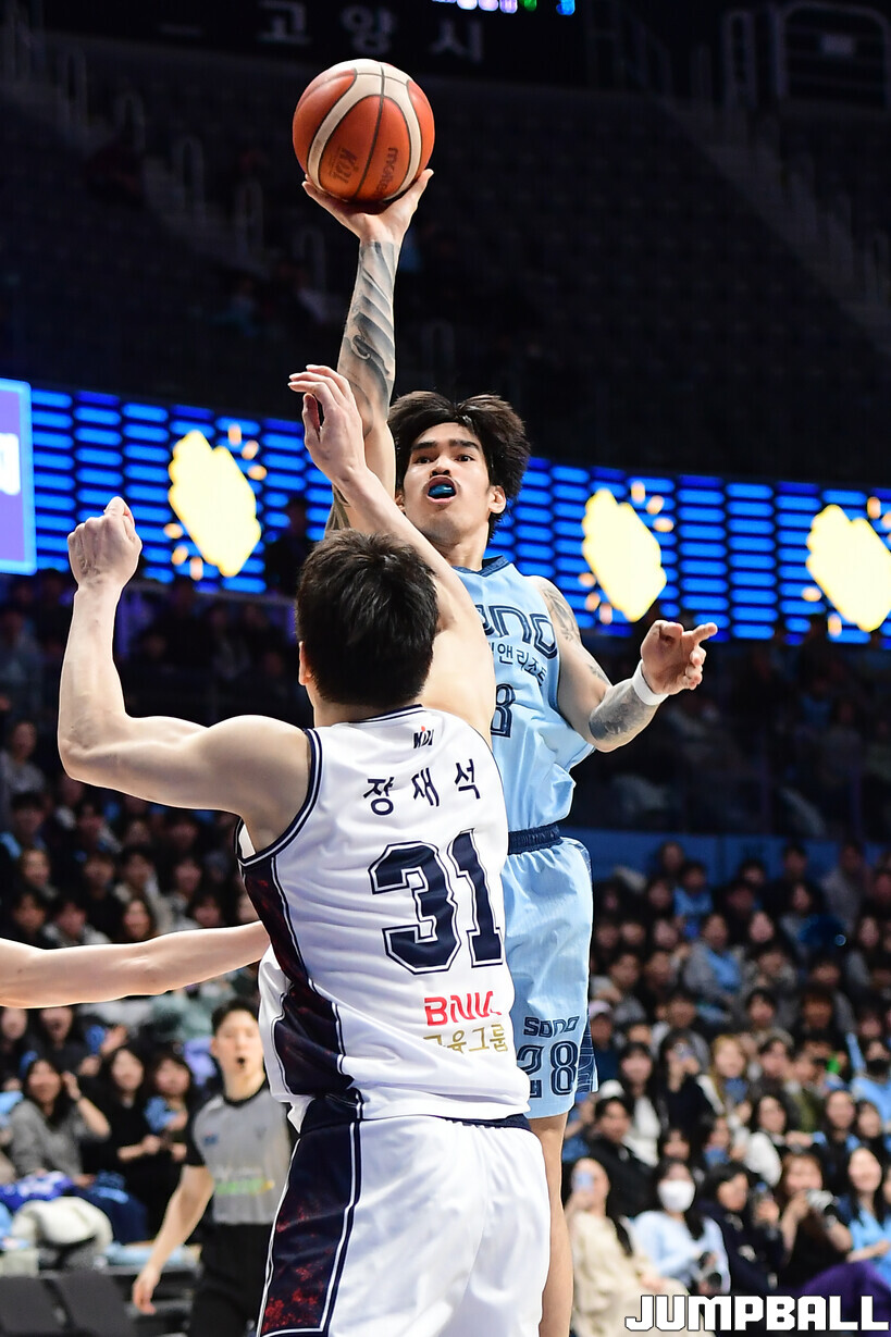 [점프볼=고양/박상혁 기자] 4일 고양 소노 아레나에서 열린 2025-2026 LG전자 프로농구 고양 소노와 부산 KCC의 경기, 소노가 KCC와 접전 끝에 95-89로 승리했다. 소노는 이정현이 30득점 8어시스트, 나이트가 21득점, 켐바오가 18점, 이재도가 11점을 올리며 활약했다.