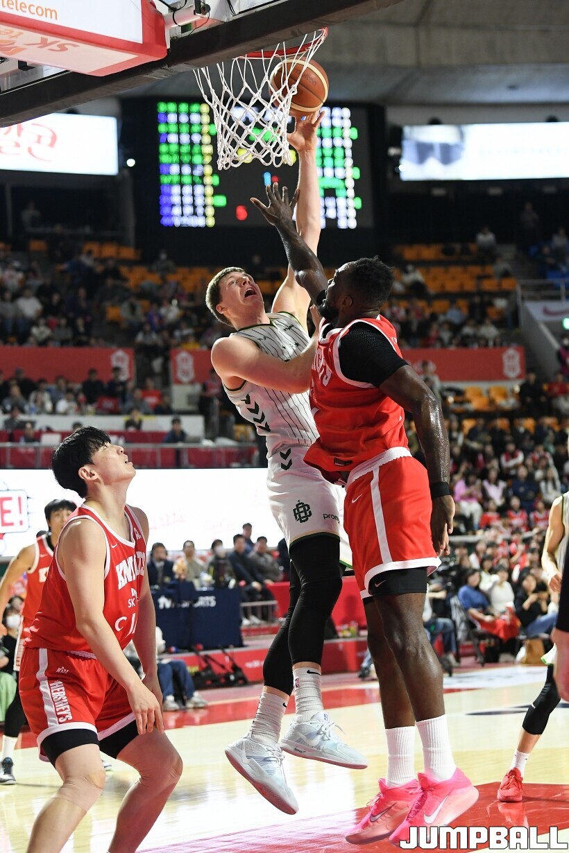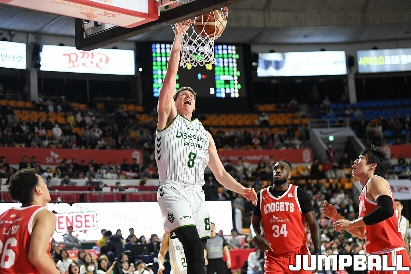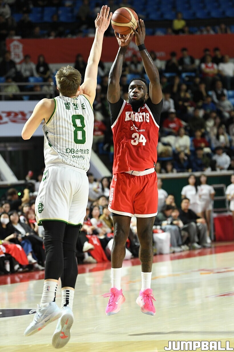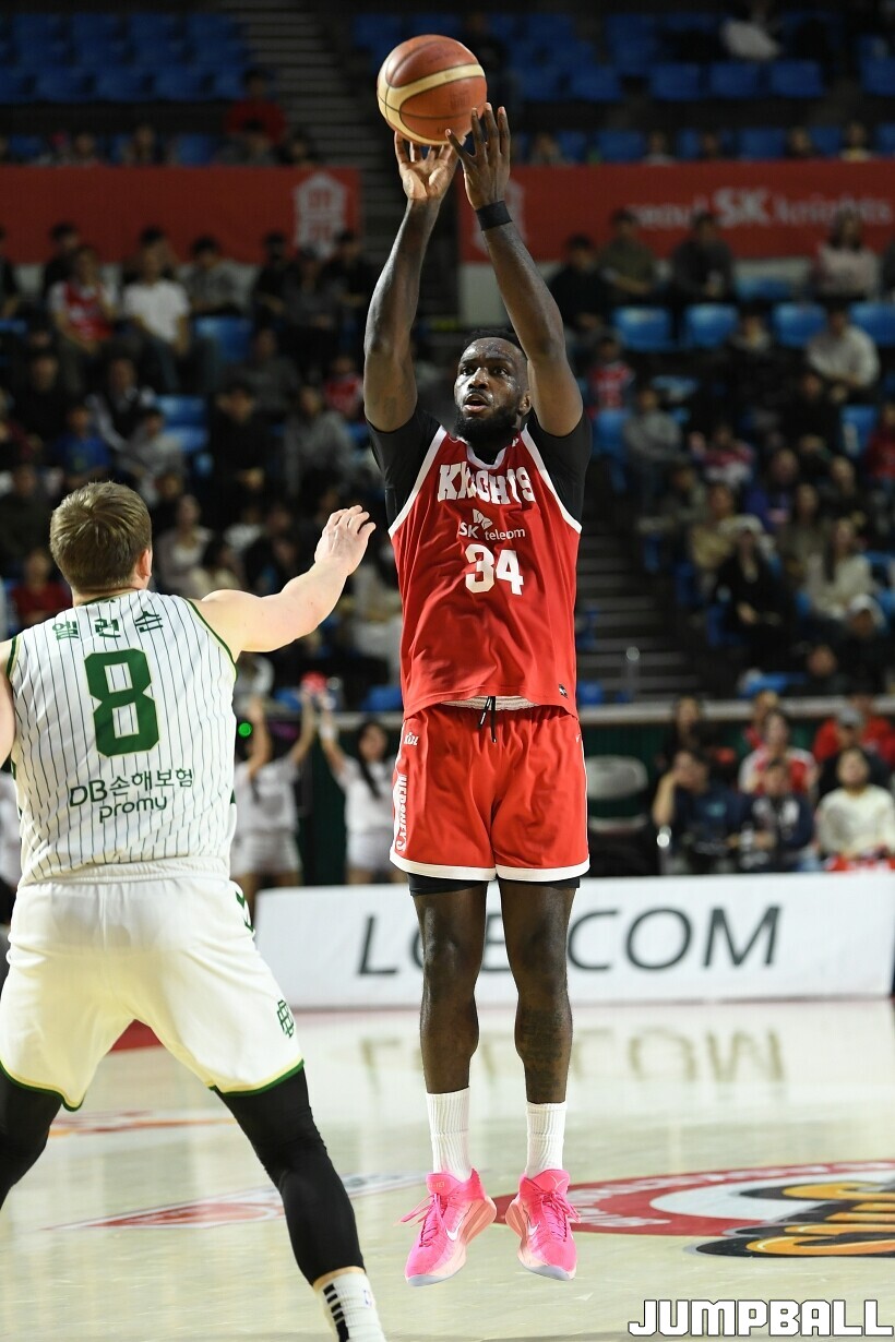 [점프볼=잠실/유용우 기자] 12일 잠실학생체육관에서 열린 2025-2026 LG전자 프로농구 서울 SK과 원주 DB의 경기, SK는 자밀 워니의 36점 14리바운드 3어시스트 더블더블 활약으로 89-68로 DB에 승리했다.