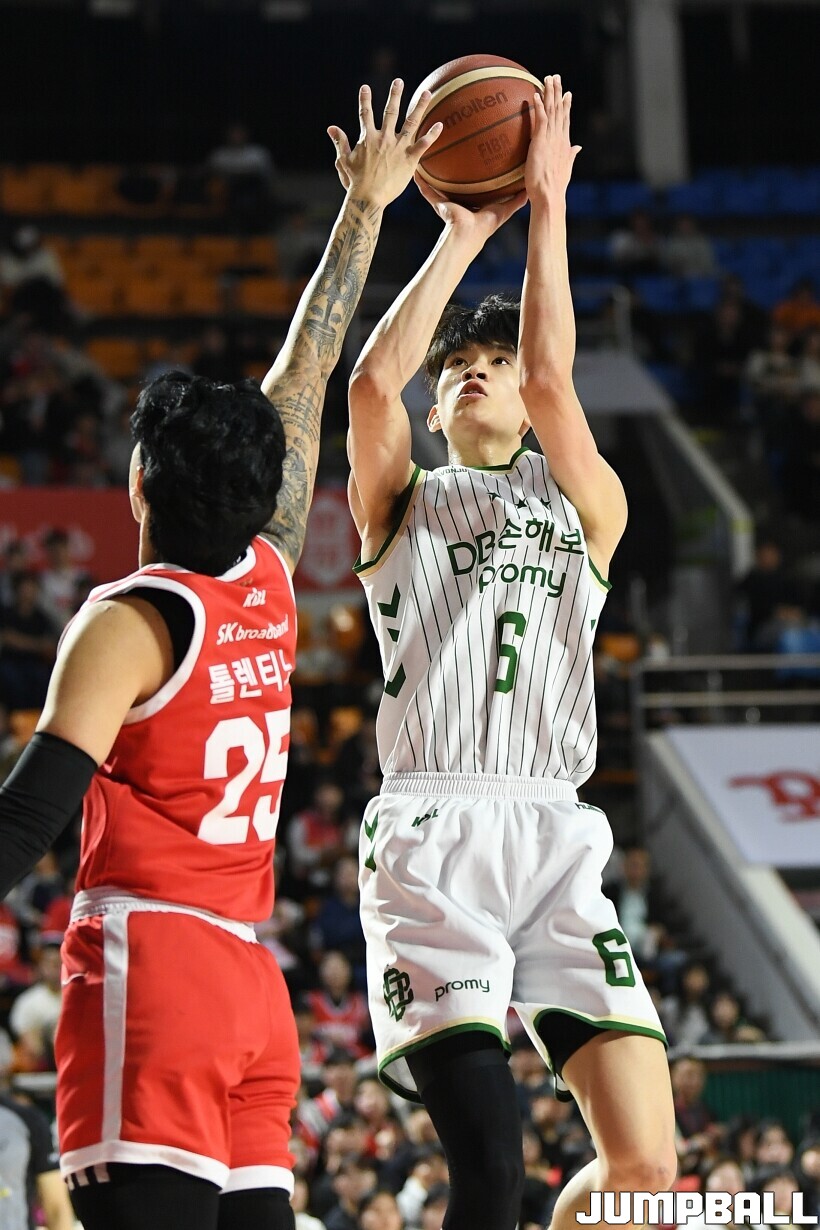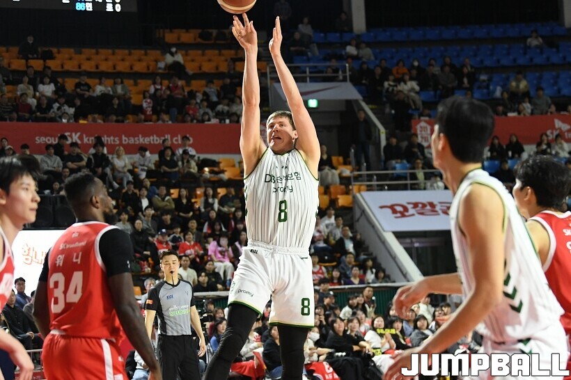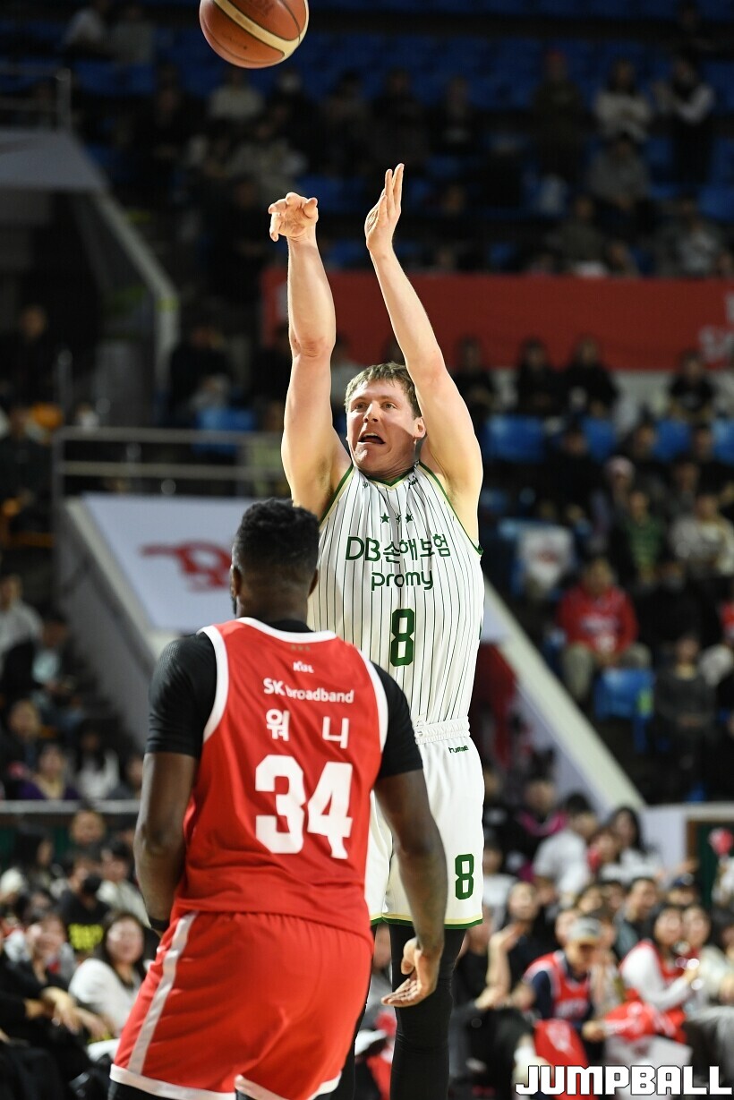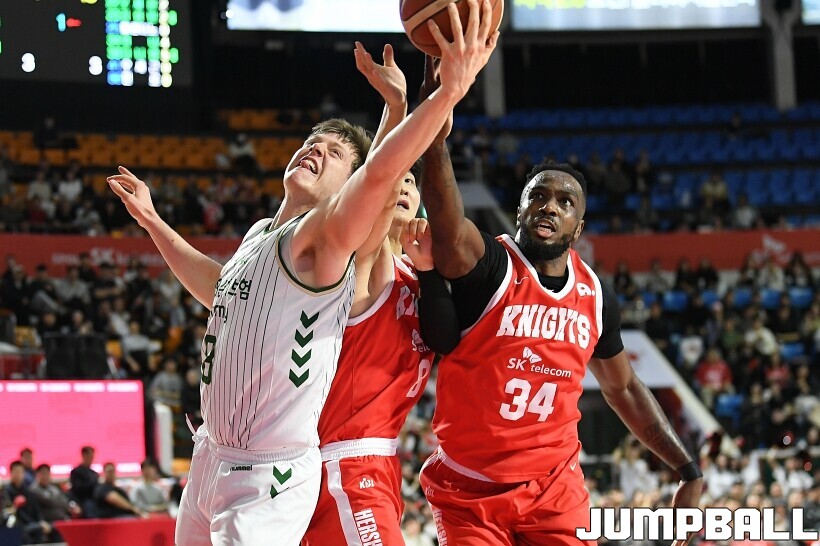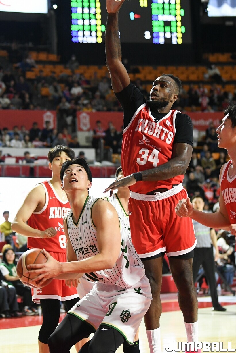 [점프볼=잠실/유용우 기자] 12일 잠실학생체육관에서 열린 2025-2026 LG전자 프로농구 서울 SK과 원주 DB의 경기, SK는 자밀 워니의 36점 14리바운드 3어시스트 더블더블 활약으로 89-68로 DB에 승리했다.