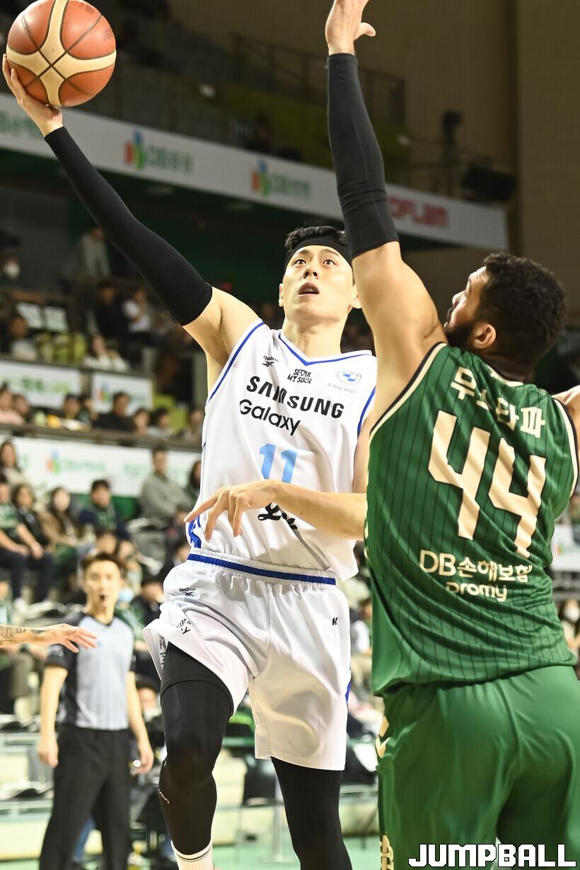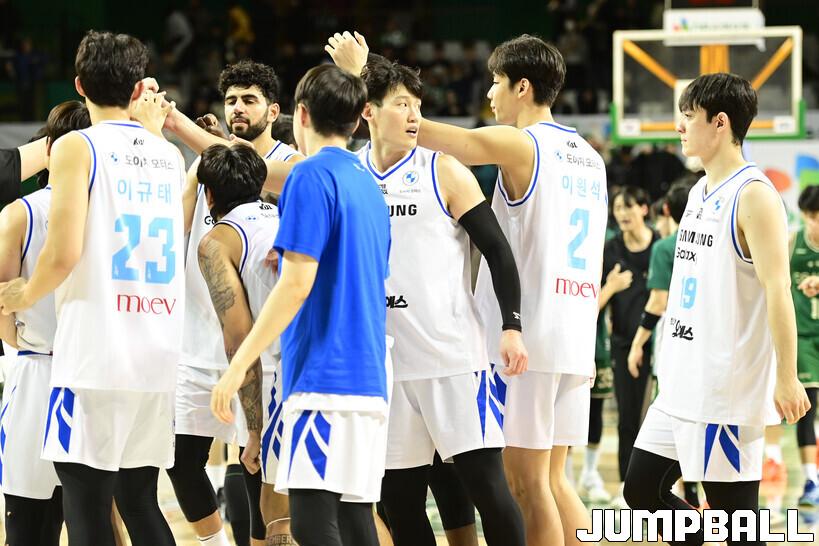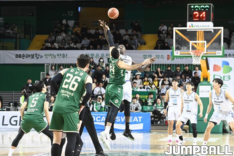[점프볼=원주/박상혁 기자] 20일 원주 DB 프로미 아레나에서 열린 2025-2026 LG전자 프로농구 원주 DB와 서울 삼성의 경기, DB가 삼성에 84-79로 승리했다.
