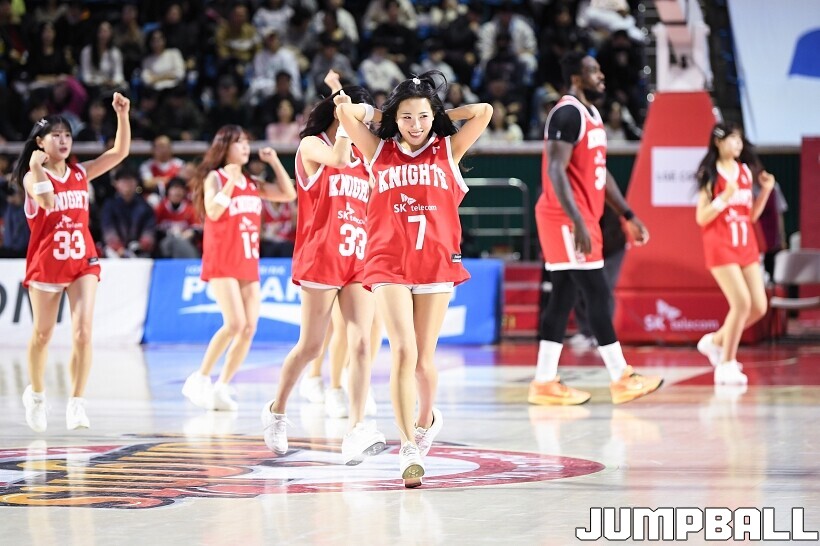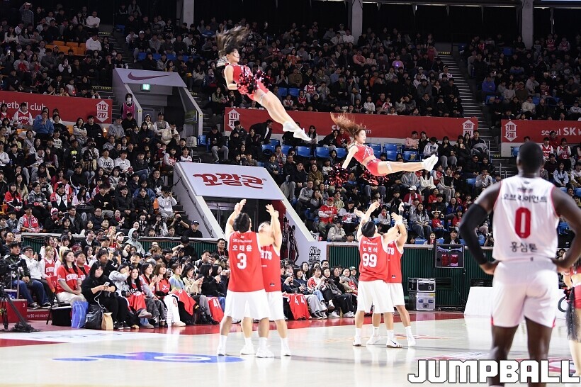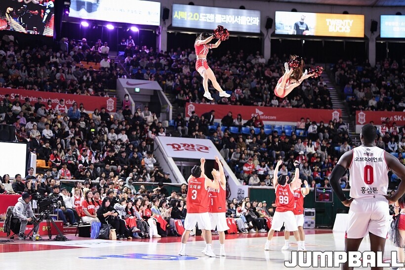 [점프볼=잠실/유용우 기자] 1일 잠실학생체육관에서 열린 2025-2026 LG전자 프로농구 서울 SK와 안양 정관장의 경기, SK 치어리더들이 화려한 퍼포먼스를 팬들에게 선보이고 있다.