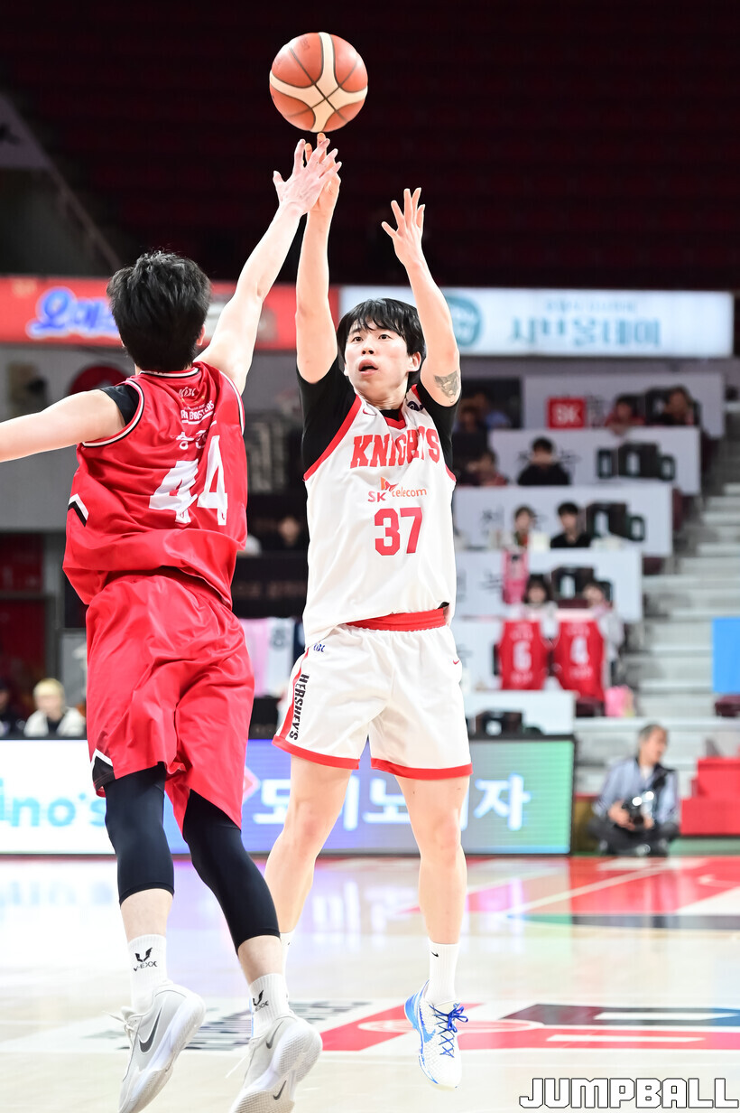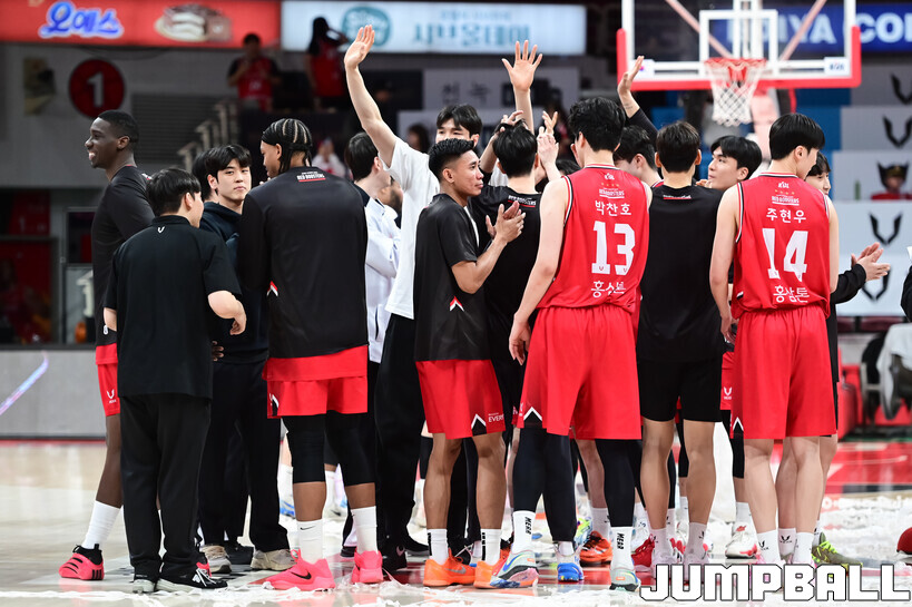 [점프볼=안양/박상혁 기자] 8일 안양 정관장 아레나에서 열린 2025-2026 LG전자 프로농구 안양 정관장과 서울 SK의 경기, 정관장이 홈에서 SK에 67-65로 승리했다.