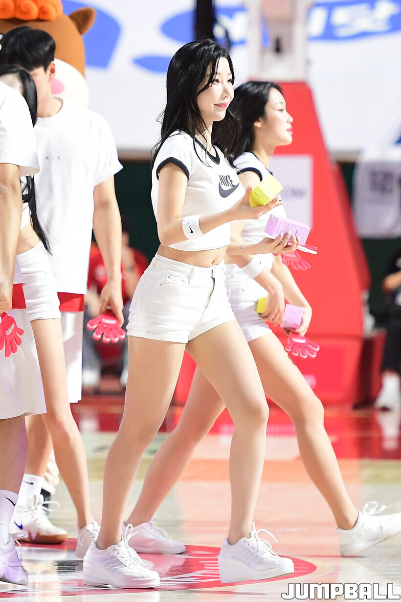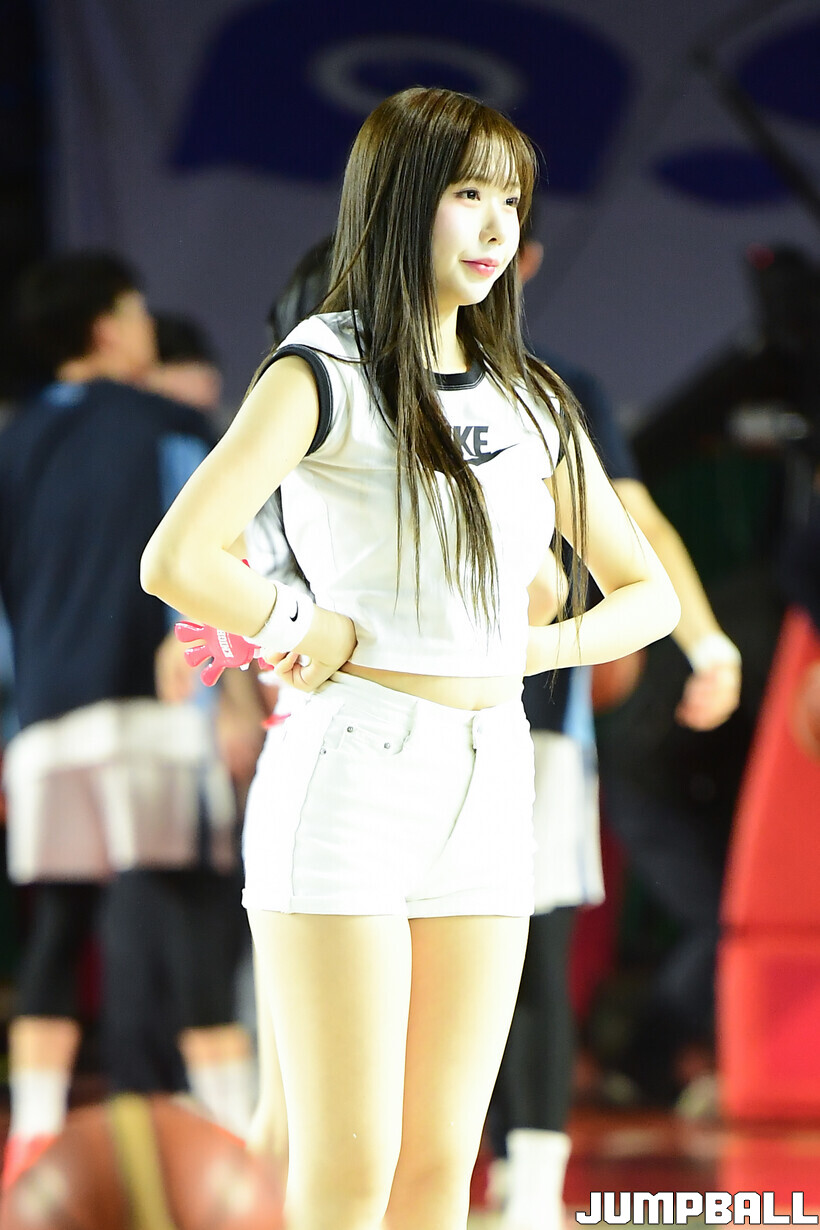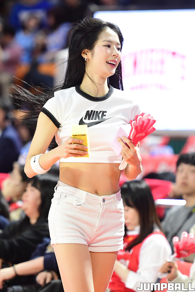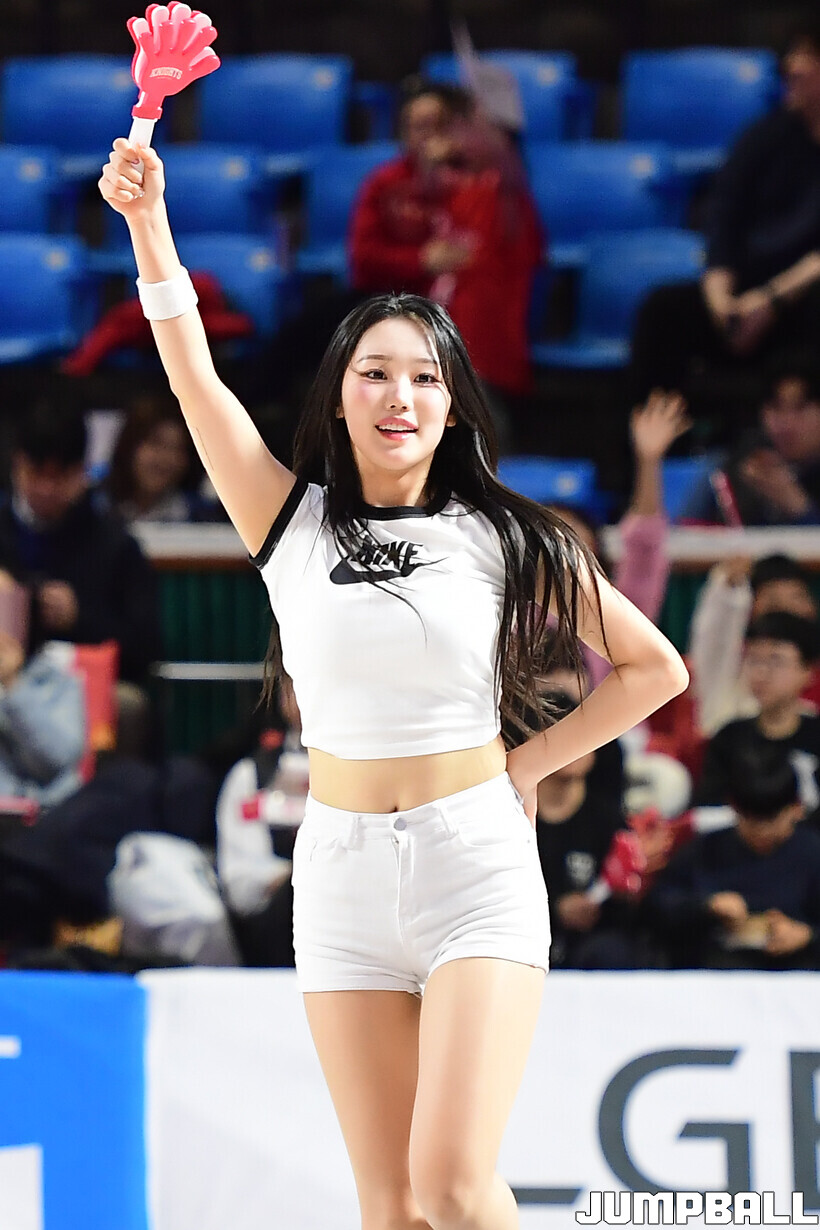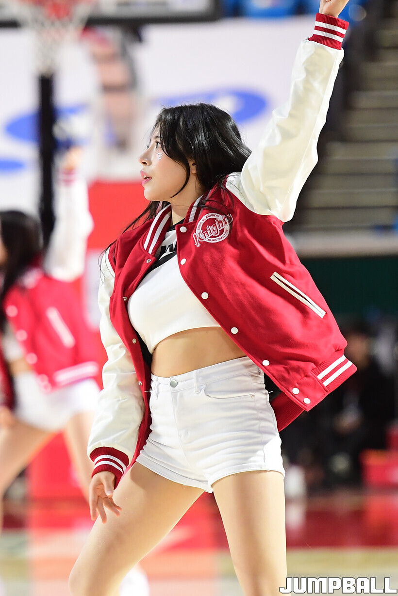 [점프볼=잠실학생/박상혁 기자] 11일 잠실학생체육관에서 열린 2025-2026 LG전자 프로농구 서울 SK와 고양 소노의 경기, SK 치어리더가 승리를 위해 팬들의 응원을 유도하고 있다.