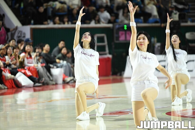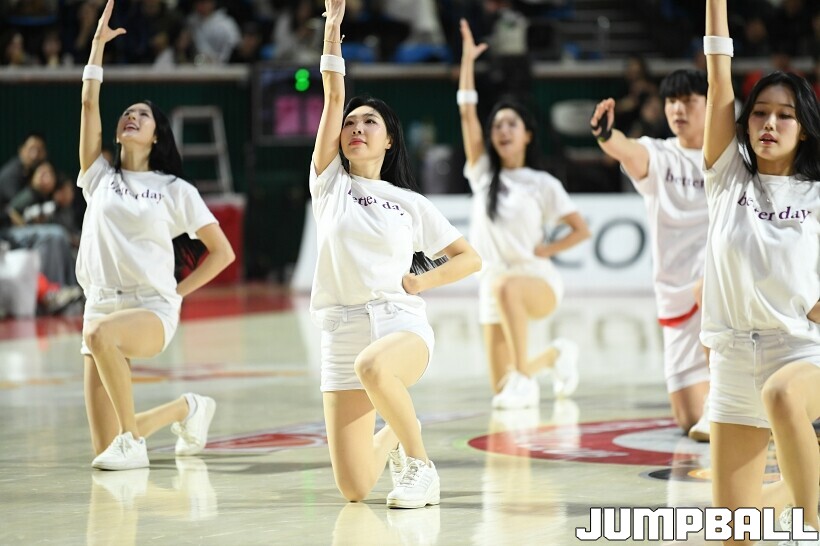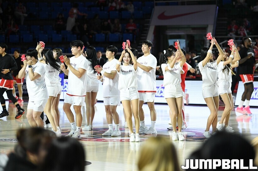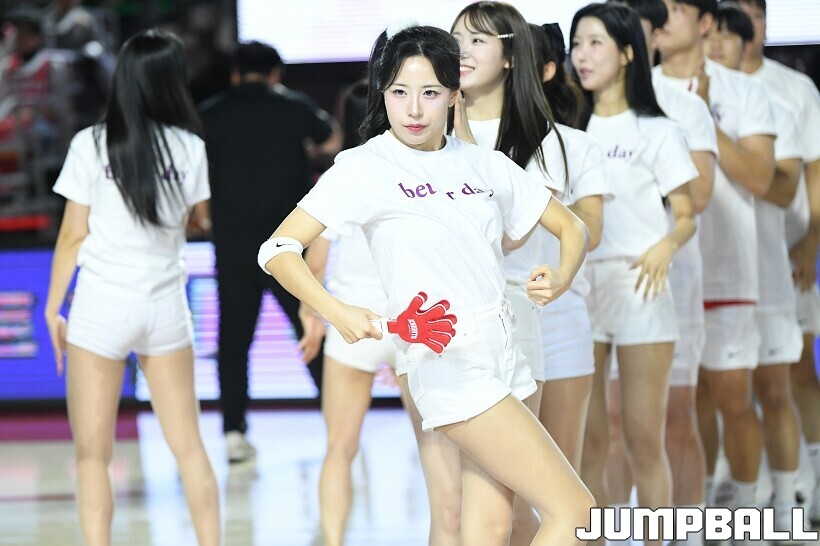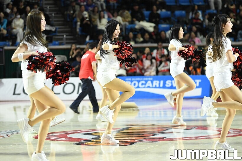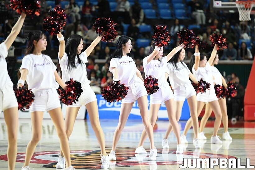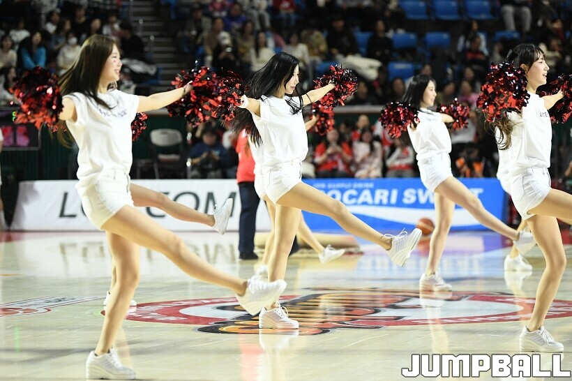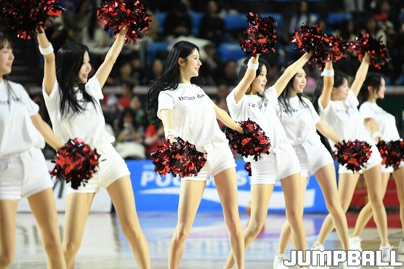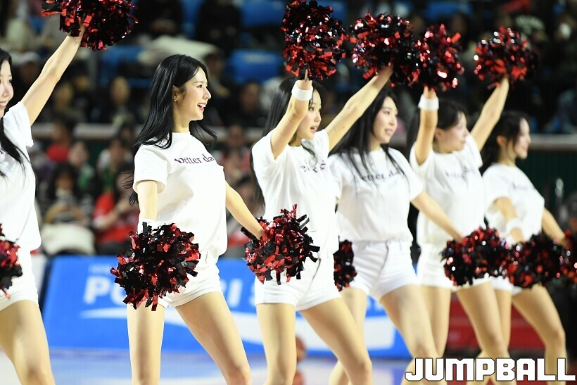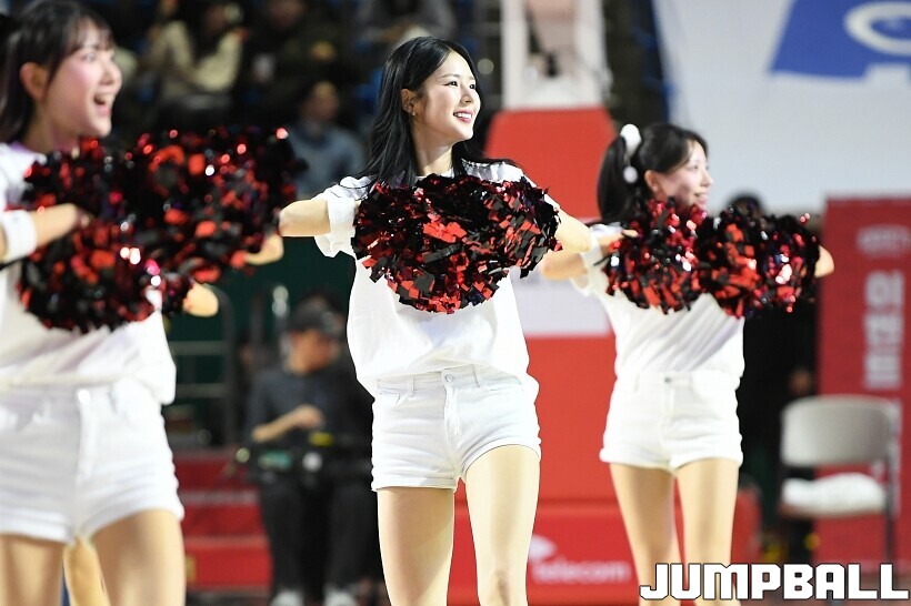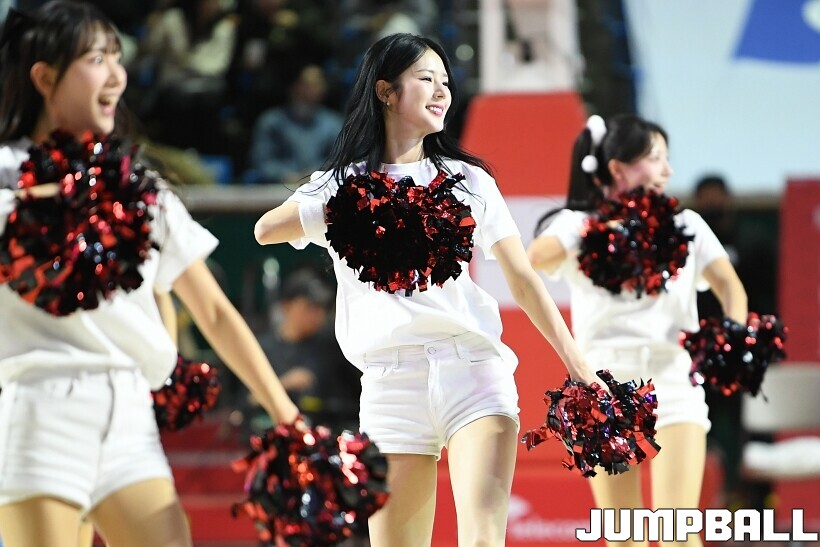 [점프볼=잠실/유용우 기자] 12일 잠실학생체육관에서 열린 2025-2026 LG전자 프로농구 서울 SK과 원주 DB의 경기, SK 치어리더들이 승리를 위해 열광적인 응원전을 펼치고 있다.