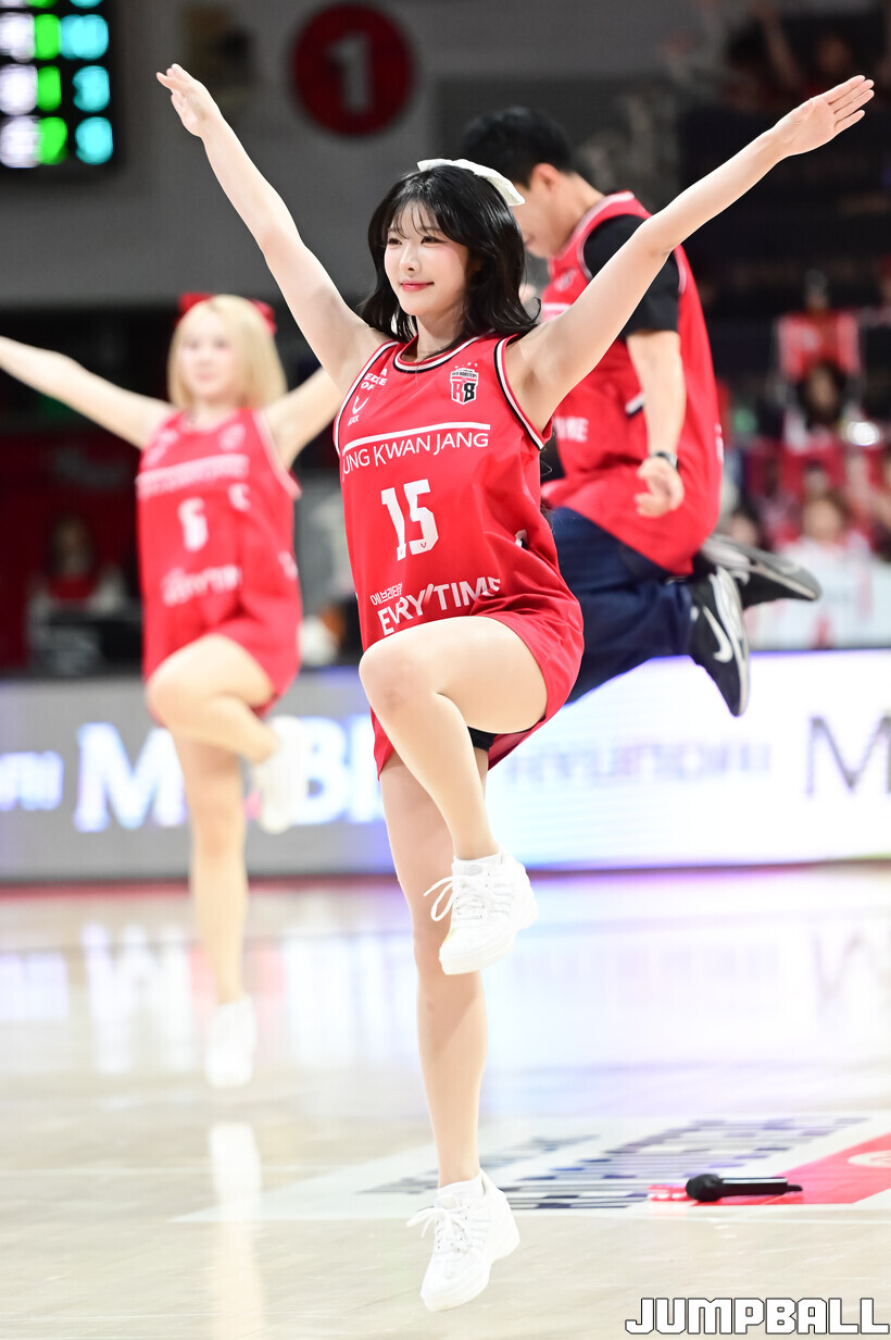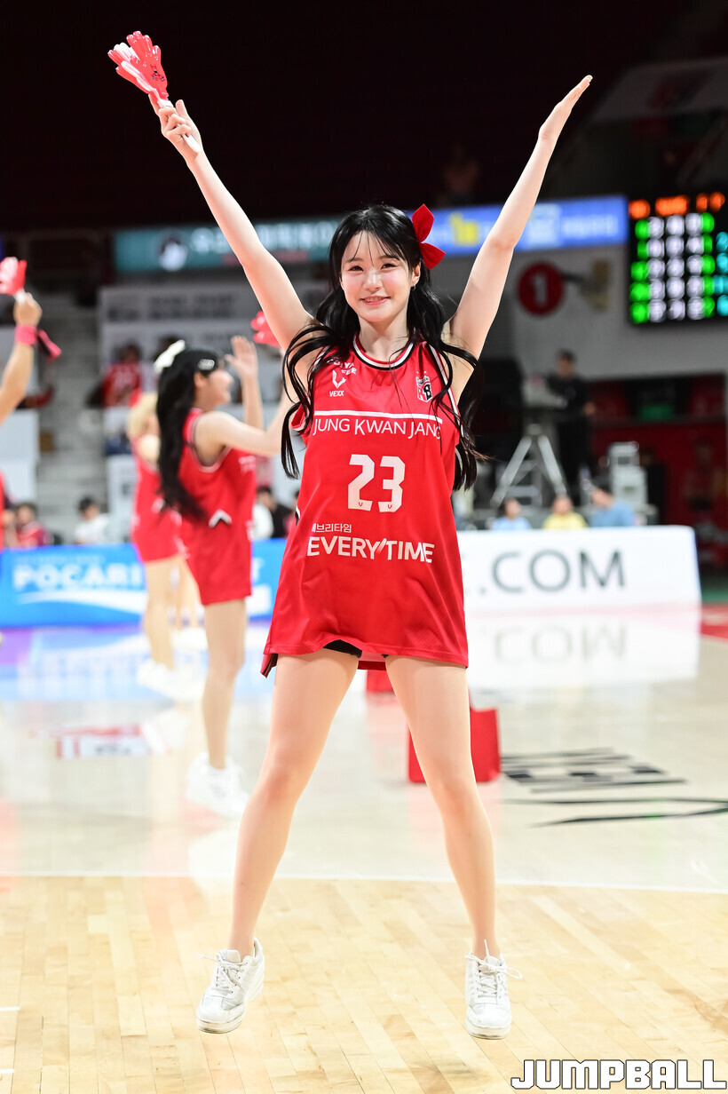 [점프볼=안양/박상혁 기자] 8일 안양 정관장 아레나에서 열린 2025-2026 LG전자 프로농구 안양 정관장과 서울 SK의 경기, 정관장 치어리더가 승리를 위해 열띤 응원을 선보였다.