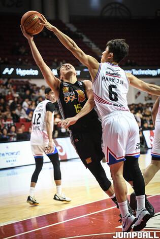 [점프볼=안양/박상혁 기자] 6일 안양체육관에서 열린 EASL(동아시아슈퍼리그) 2023-2024시즌 A조 안양 정관장과 TNT 트로팡기가의 경기, 정관장 정효근이 레이업슛을 시도하고 있다.