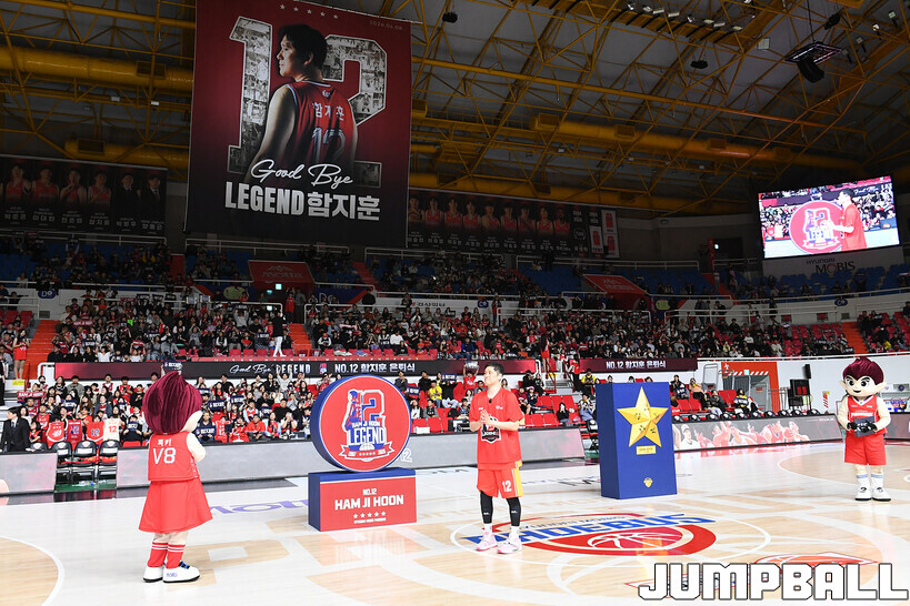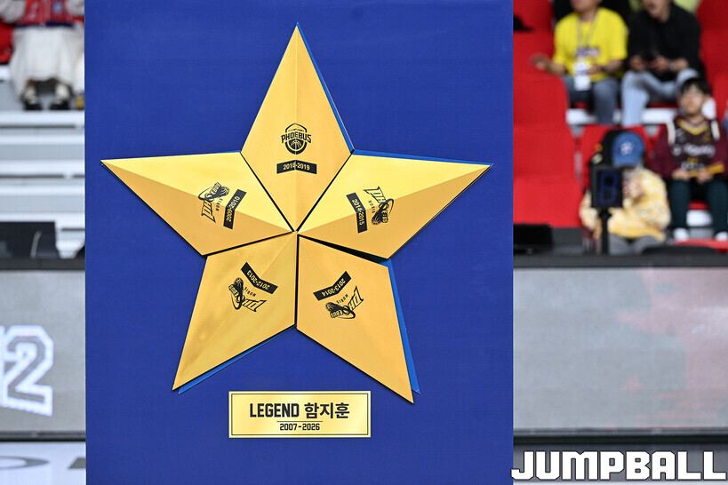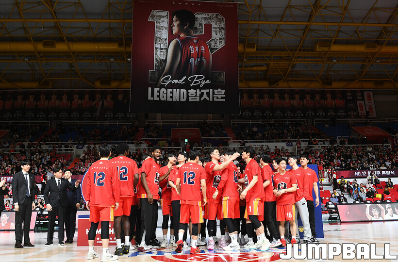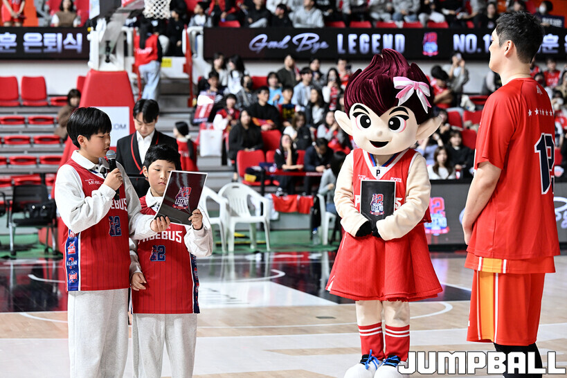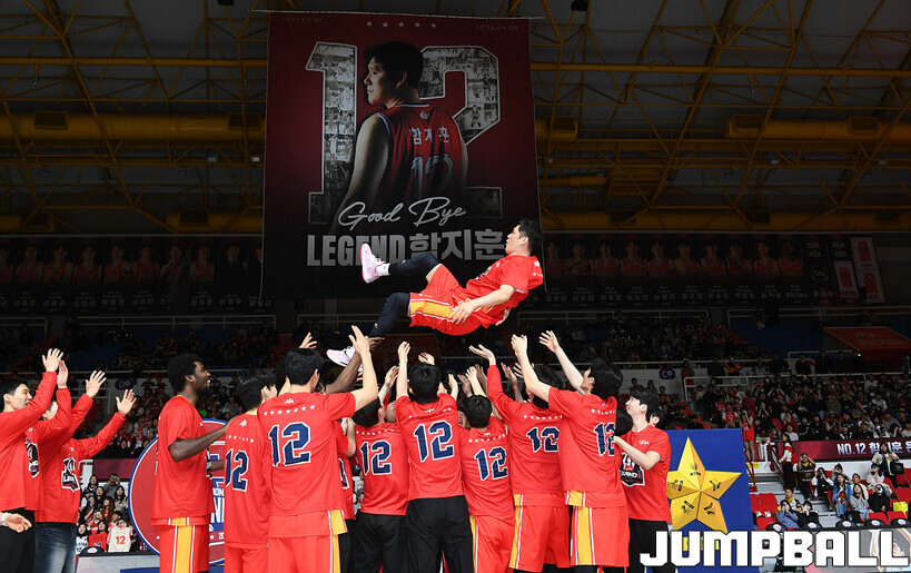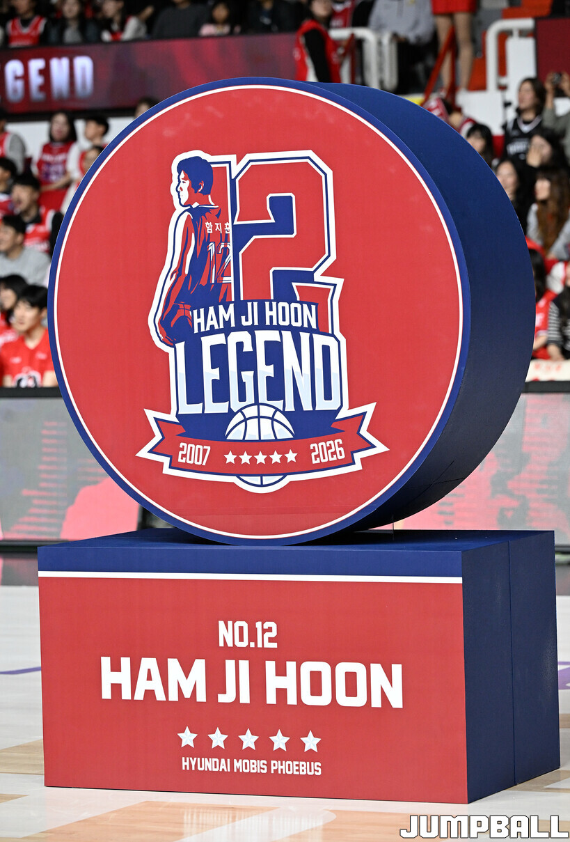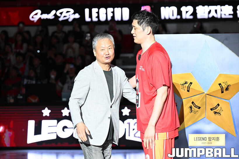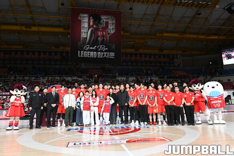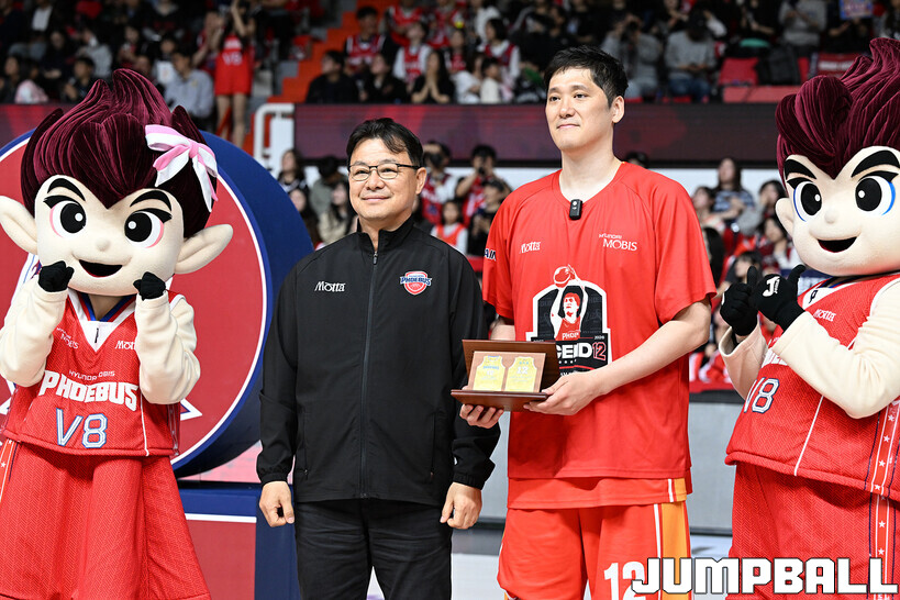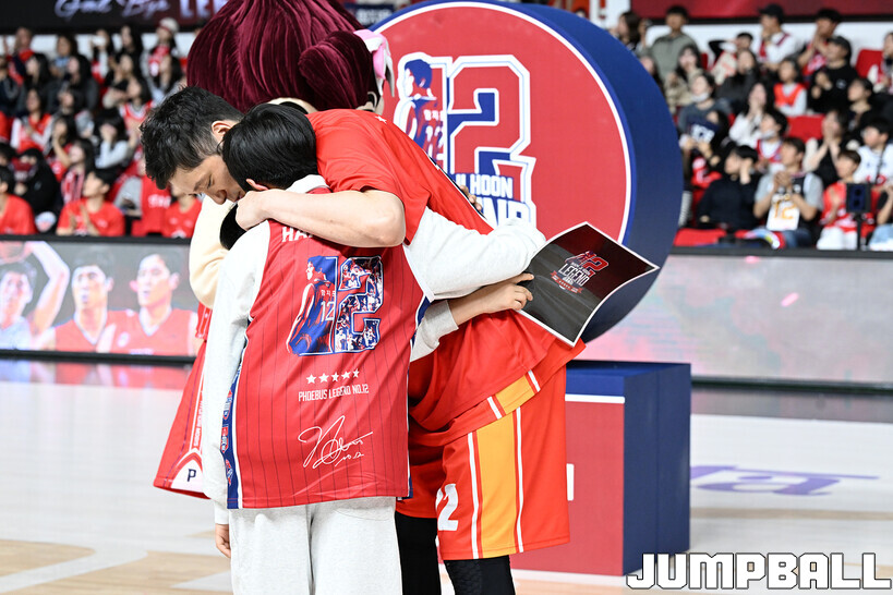 [점프볼=울산/문복주 기자] 울산 현대모비스는 8일 울산동천체육관에서 벌어진 2025-2026 LG전자 프로농구 정규시즌 홈 마지막 창원 LG와의 경기후 함지훈 선수의 은퇴식을 홈 팬들과 선수단의 축하와 격려를 받으며 행사을 진행 했다.