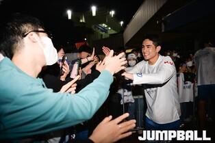 19일 대구실내체육관에서 열린 2022-2023 SKT 에이닷 프로농구 대구 한국가스공사와 원주 DB의 경기, 한국가스공사가 98-78로 첫승을 거두었다. 벨란겔이 경기장 앞에서 기다리는 팬들에게 팬서비스를 하고 있다. [점프볼=대구/유용우 기자]