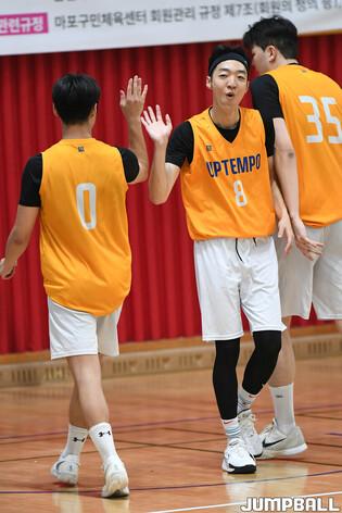 [점프볼=망원/박상혁 기자] 10일 마포구민체육센터에서 열린 '2025 D3 서울 마포구 농구 디비전리그(썸머리그) ' 업템포와 블랙라벨의 결승전 경기, 업템포 방덕원이 박수를 보내고 있다.