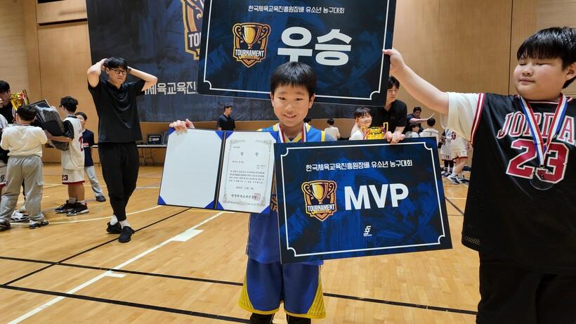 김진(U9)_첫 MVP를 받을 수 있어서 너무 기뻐요. 이번 대회를 준비하면서 레이업이랑 드리블, 슛, 기본기를 탄탄하게 연습했고 그런 부분들이 잘 되어서 기뻐요. 친구들한테 너무 고맙고 다음에도 또 열심히 하자고 이야기해주고 싶어요! 다음 대회 목표도 당연히 우승이고 코치님도 열심히 가르쳐주셔서 감사합니다.