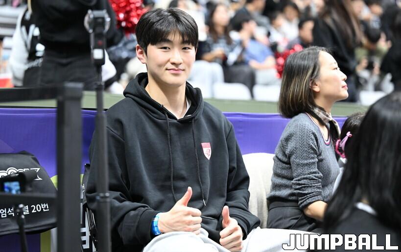 9일 수원 KT 소닉붐 아레나에서 열린 2025-2026 LG전자 프로농구 정규시즌 수원 KT와 고양 소노의 2라운드 맞대결. 1층 관중석에 낯익은 얼굴이 앉아 경기를 관람하고 있었다. 고려대 3학년 문유현이 그 주인공.