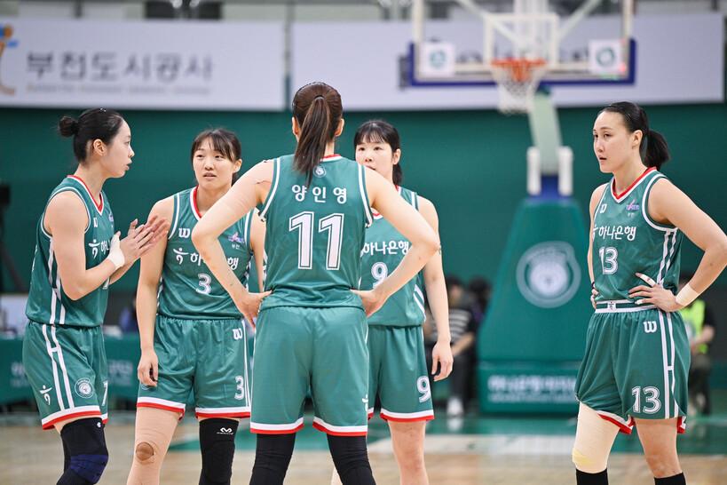 부천 하나은행은 27일 부천체육관에서 열린 하나은행 2024~2025 여자프로농구 정규리그 아산 우리은행과 맞대결에서 52-62로 패했다.