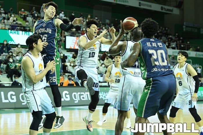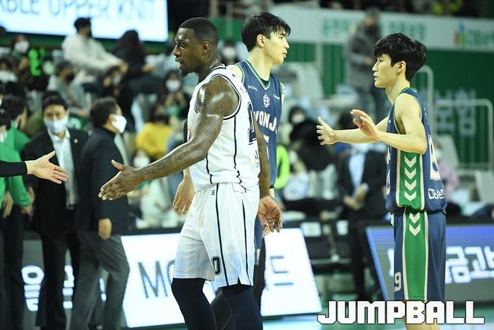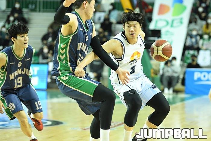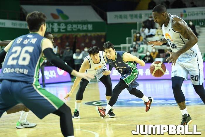 27일 원주 종합체육관에서 열린 2021~2022 KGC인삼공사 정관장 프로농구 원주 DB와 전주 KCC의 경기, DB가 92-76으로 KCC에 승리했다.