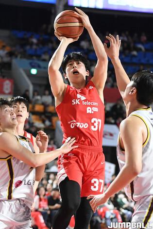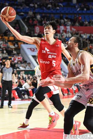 [점프볼=잠실학생/박상혁 기자] 28일 잠실학생체육관에서 열린 2023-2024 정관장 프로농구 서울 SK와 창원 LG의 경기, SK가 홈에서 LG에 82-62로 승리하며 4위를 확정지었다.
