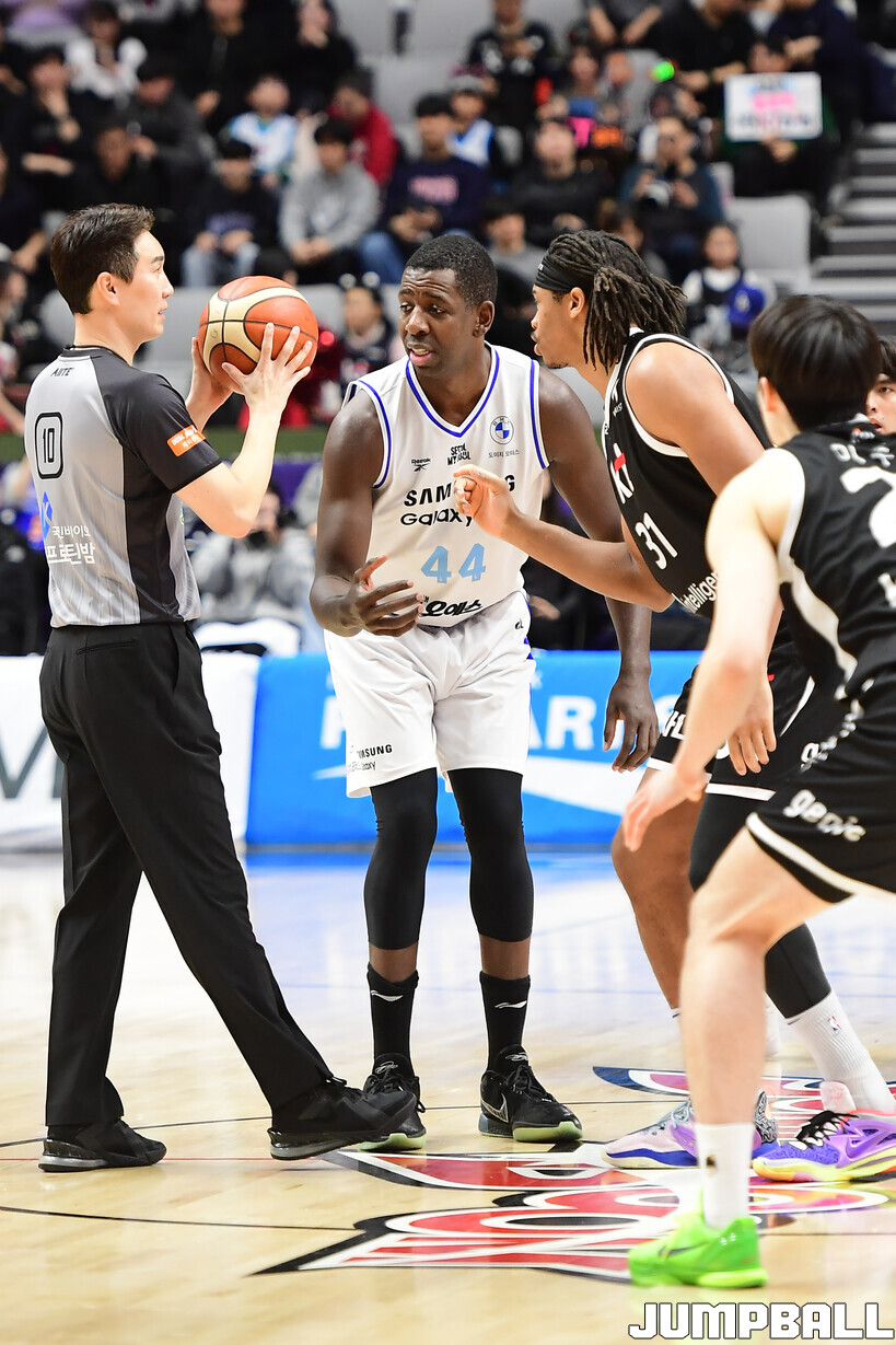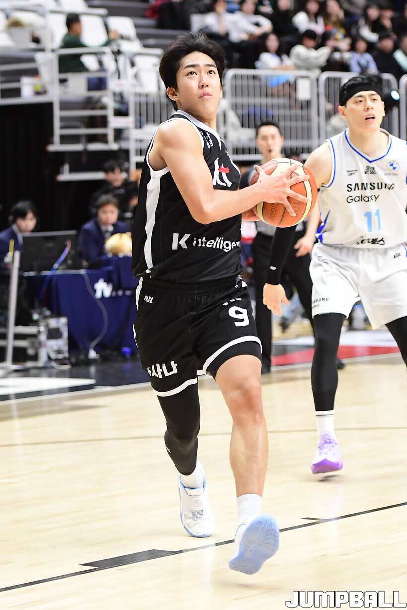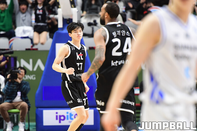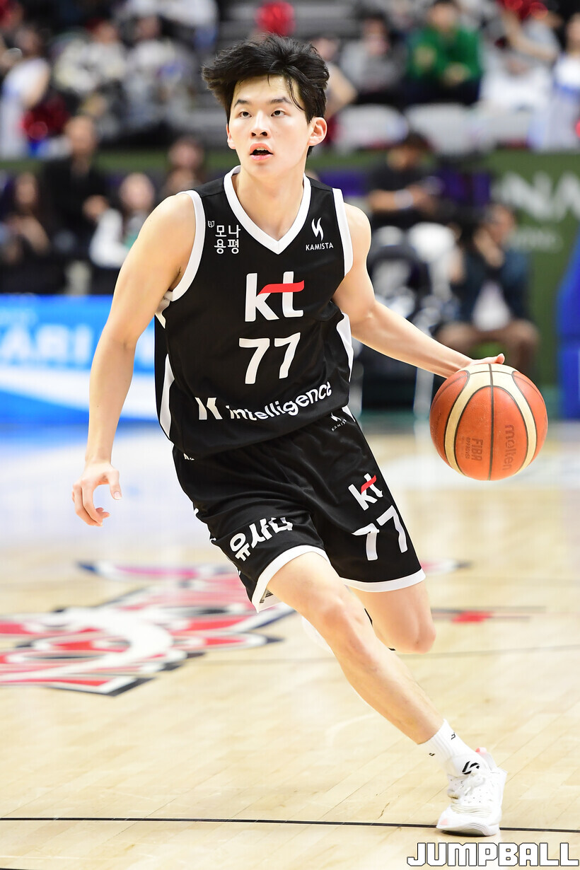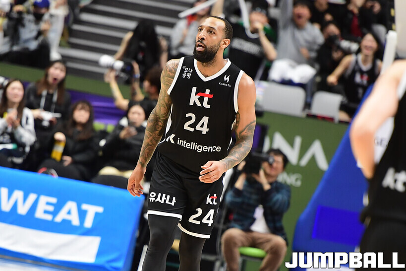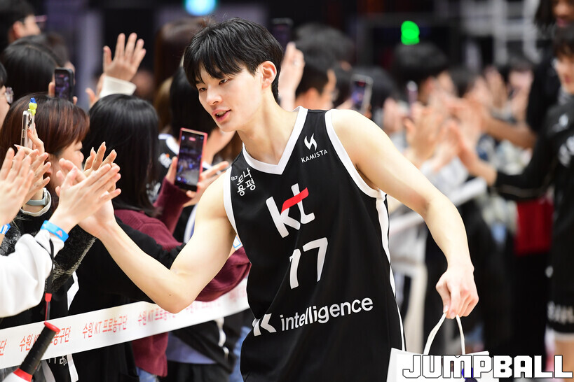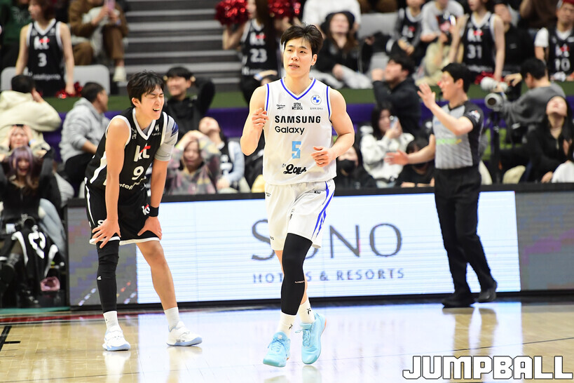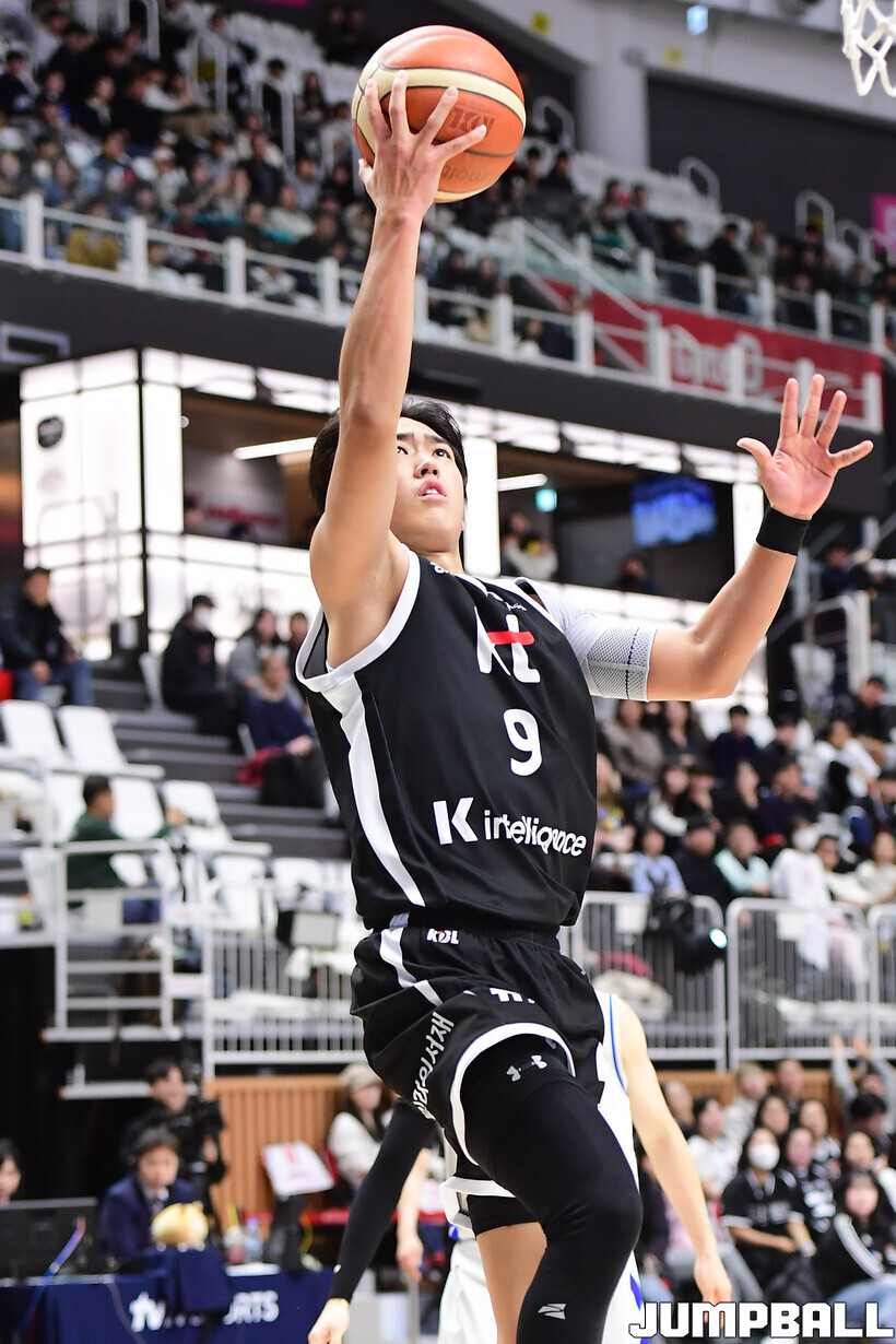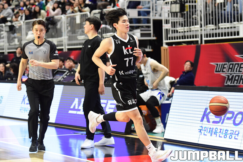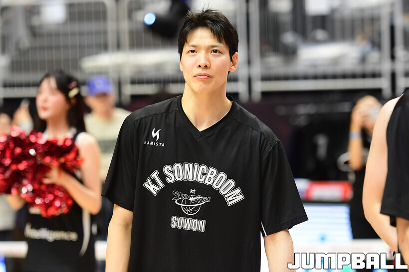 [점프볼=수원/박상혁 기자] 9일 수원 KT 소닉붐 아레나에서 열린 2025-2026 LG전자 프로농구 수원 KT와 서울 삼성의 경기, KT가 연장까지 가는 승부끝에 삼성에 104-101로 승리했다.