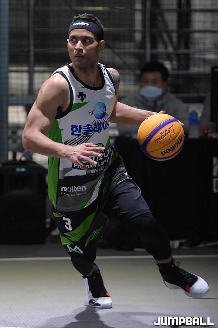 [점프볼=고양/박상혁 기자] 2일 고양 스타필드 스포츠 몬스터 특설코트에서 열린 '컴투스 KOREA 3X3 프리미어리그 2020' 1라운드 경기, 한솔레미콘 전태풍이 돌파를 시도하고 있다.