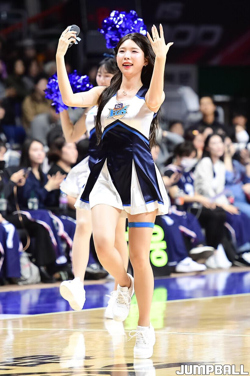[점프볼=부산/박상혁 기자] 15일 부산사직체육관에서 열린 2025-2026 LG전자 프로농구 부산 KCC와 울산 현대모비스의 경기, KCC 치어리더가 홈 개막전 승리를 위해 응원을 펼쳤다.