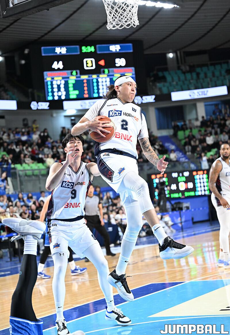 [점프볼=대구/문복주 기자] 부산 KCC는 18일 대구체육관에서 열린 2025~2026 LG전자 프로농구 대구 한국가스공사와 원정 경기에서 94-93으로 연장 역전승을 거두었다.