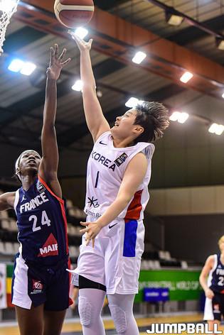 8일 헝가리 데브레첸 올라가보르 스포츠홀에서 열린 '2021 FIBA U19 여자농구월드컵' 한국과 프랑스 조별 예선 2차전 경기, 심수현이 공격을 시도하고 있다.