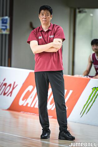 12일 상주체육관 신관에서 열린 제39회 MBC배 전국대학농구 상주대회 연세대와 경희대 경기, 연세대 이주영이 코트에서 뛰는 동료들에게 박수를 보내고 있다.