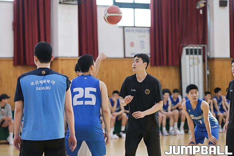 국군체육부대 상무 농구단은 15일 삼일중·고등학교 엘리트 농구부를 찾아 재능기부 코칭 프로그램을 진행했다.