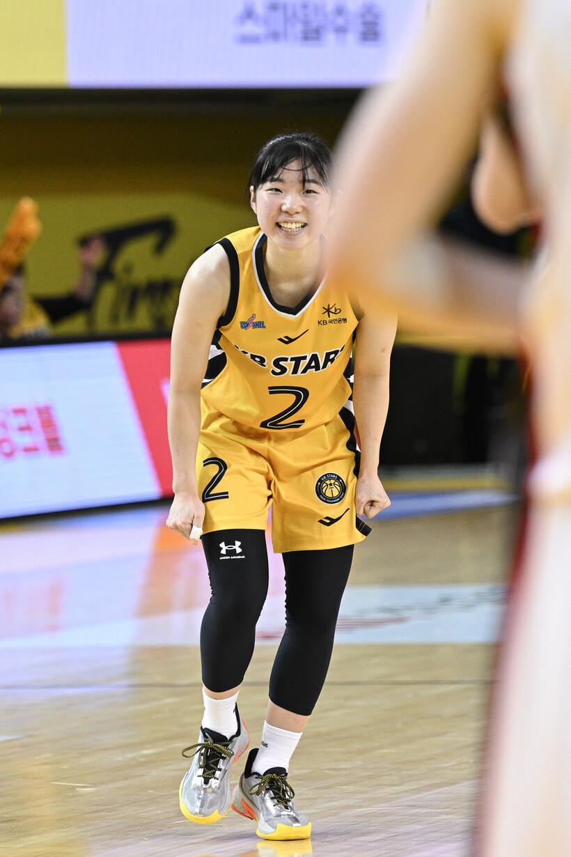이 가운데에 지난 19일 KB스타즈와 삼성생명과의 경기에서 보는 이들을 놀라게 할 만한 장면이 나왔다. 4쿼터에 나온 허예은의 플레이였다. 비하인드 드리블로 상대 수비를 제친 뒤 머리 뒤로 절묘한 패스를 넣었다. 이 패스는 골밑에 있던 송윤하에게 정확하게 배달됐고 손 쉬운 골밑 득점이 나왔다.